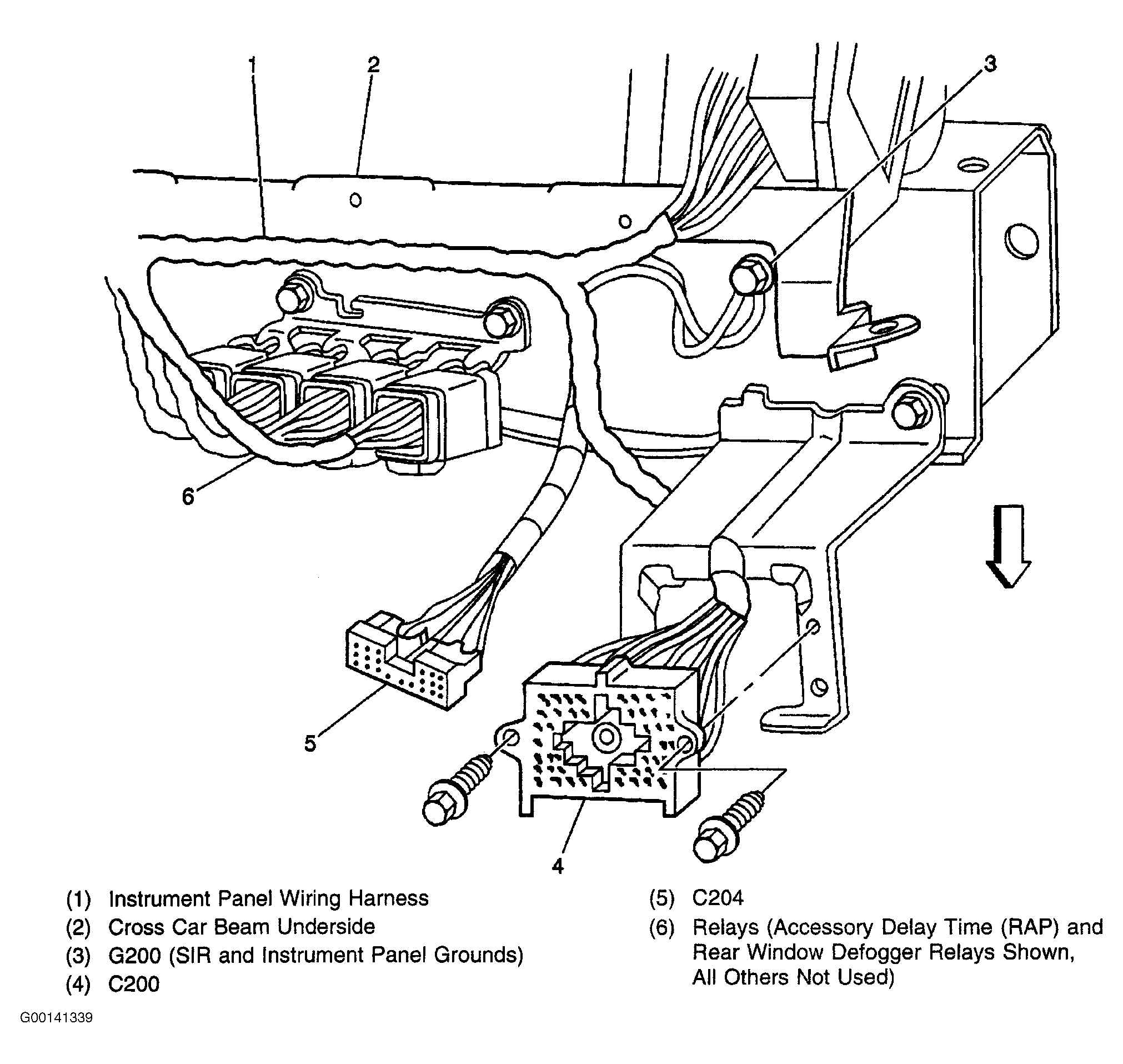 | C200 (56 cavities) | In Instrument Panel Wiring Harness To Body Wiring Harness, Behind Right Side Of The Instrument Panel. See Fig 4 |