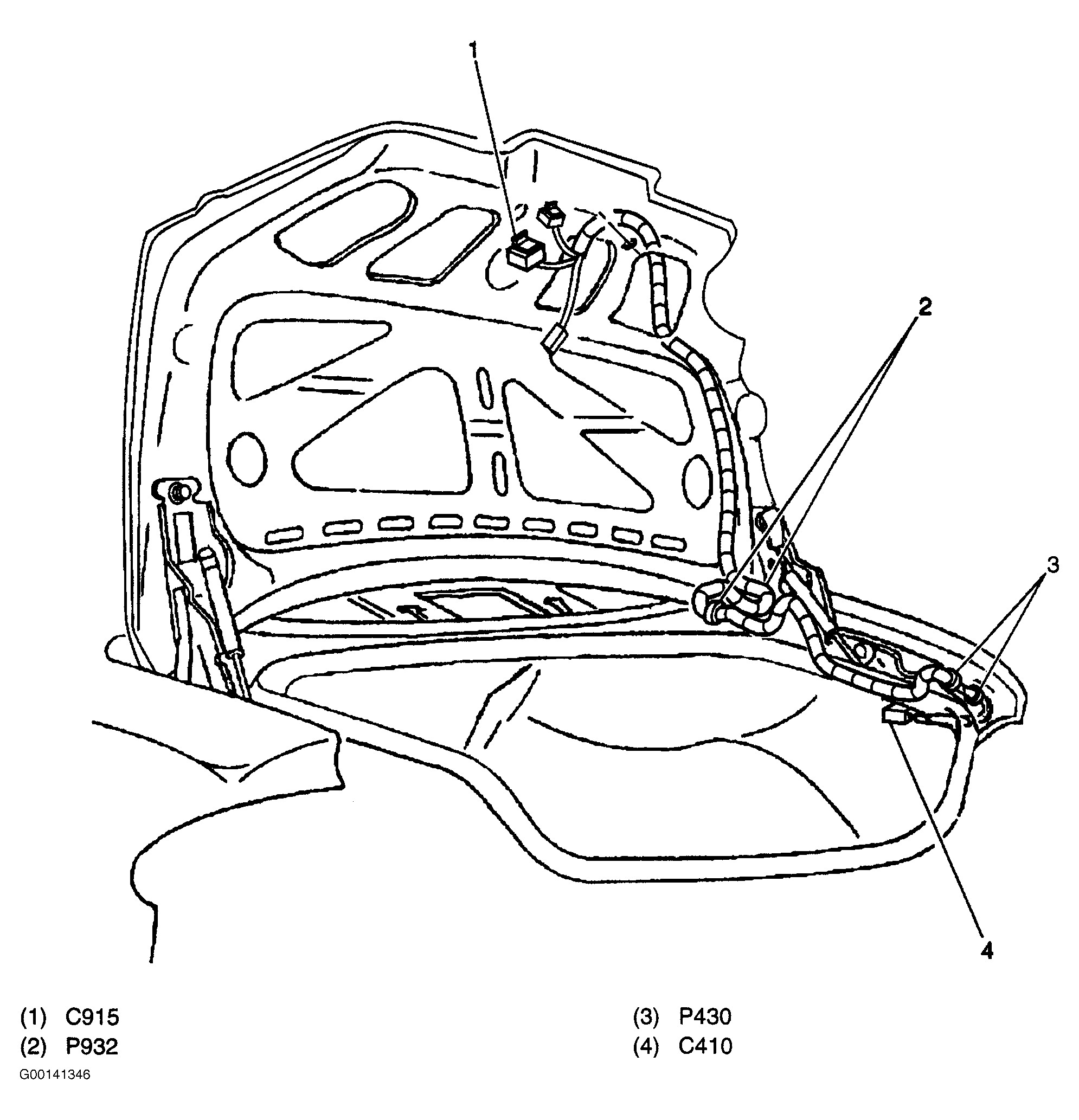 | S930 | In Rear Deck Lid Wiring Harness, In Rear Compartment Lid, Approximately 15" (38 cm) From P432 |