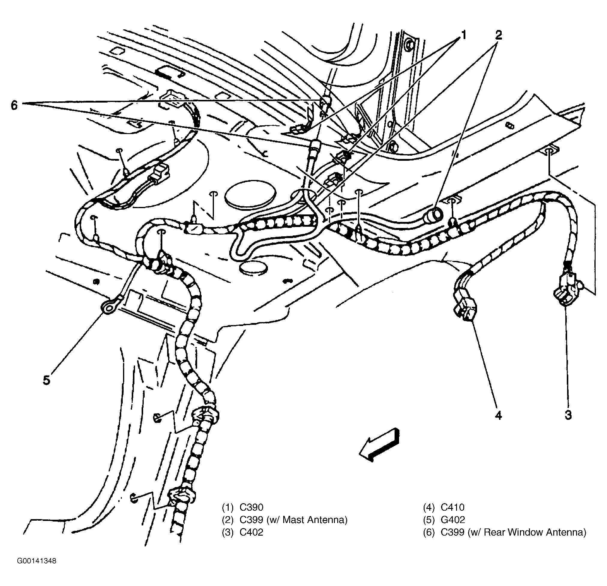 | C410 (8 cavities) | In Body Wiring Harness To Rear Compartment Lid wiring Harness, Right Side Of Trunk, Above Wheel Well. See Fig 11 |