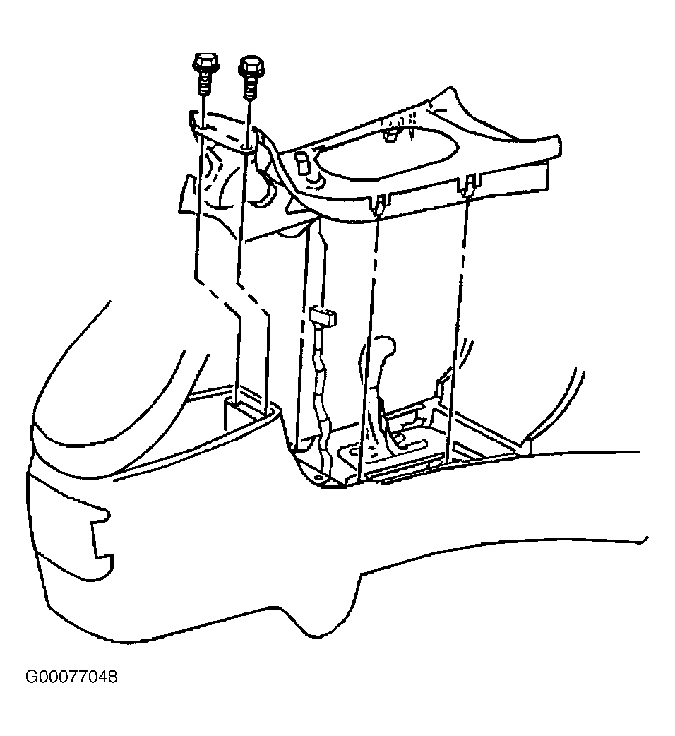 - Install the 2 retainers that attach the front floor console trim plate to the front floor console. Tighten the 2 retainers to 18 INCH lbs. (2 N.m). See Fig 1