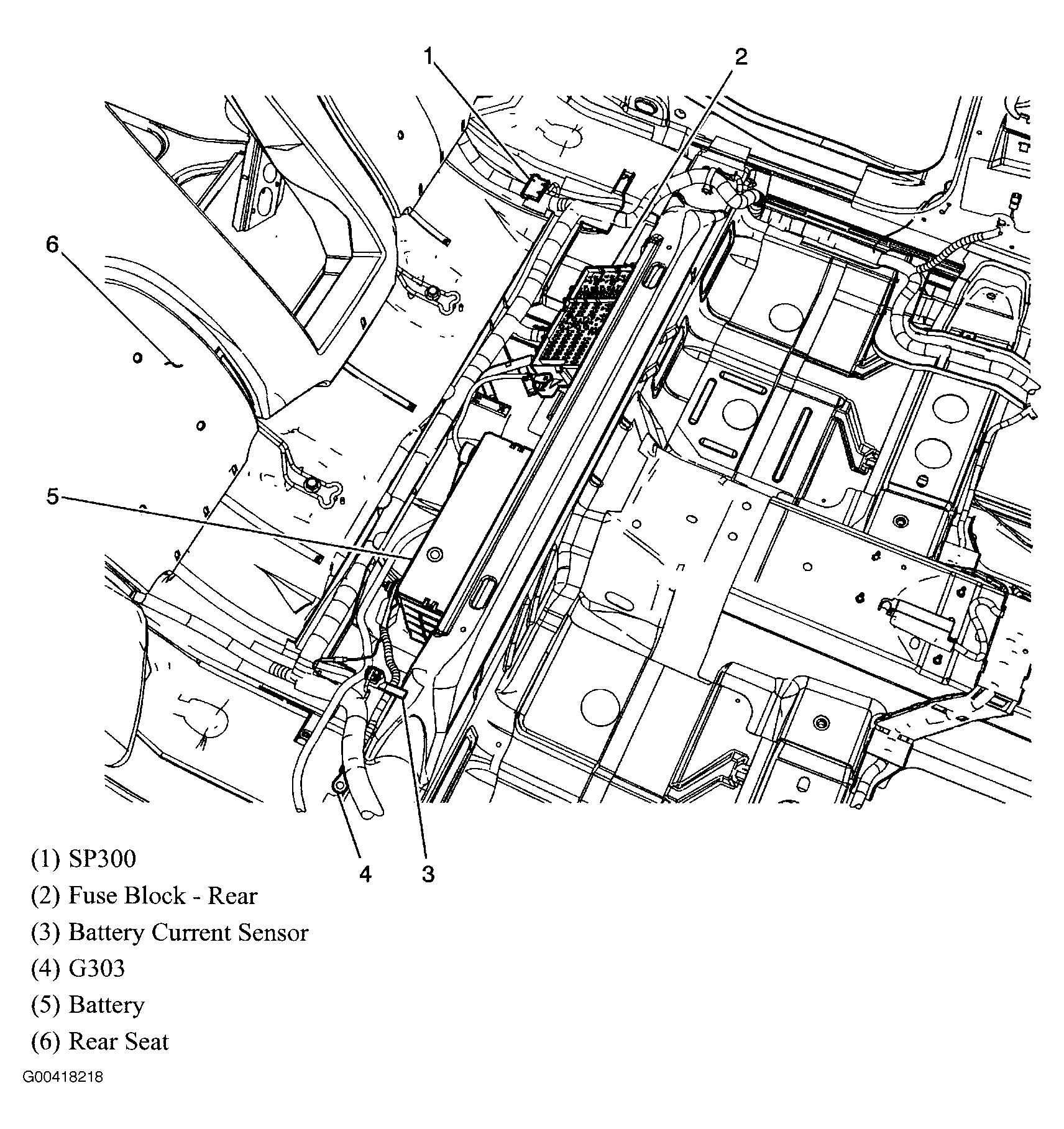 Below left side of rear seat. See