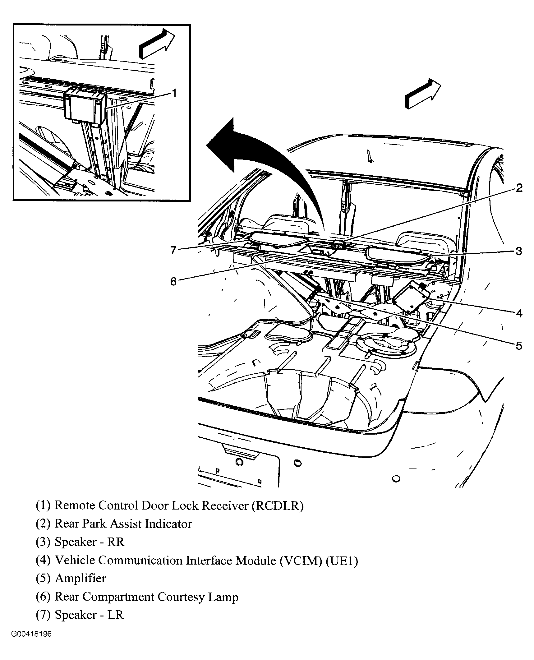 | Remote Control Door Lock Receiver (RCDLR) | Under center of rear package shelf. See Figure. |
