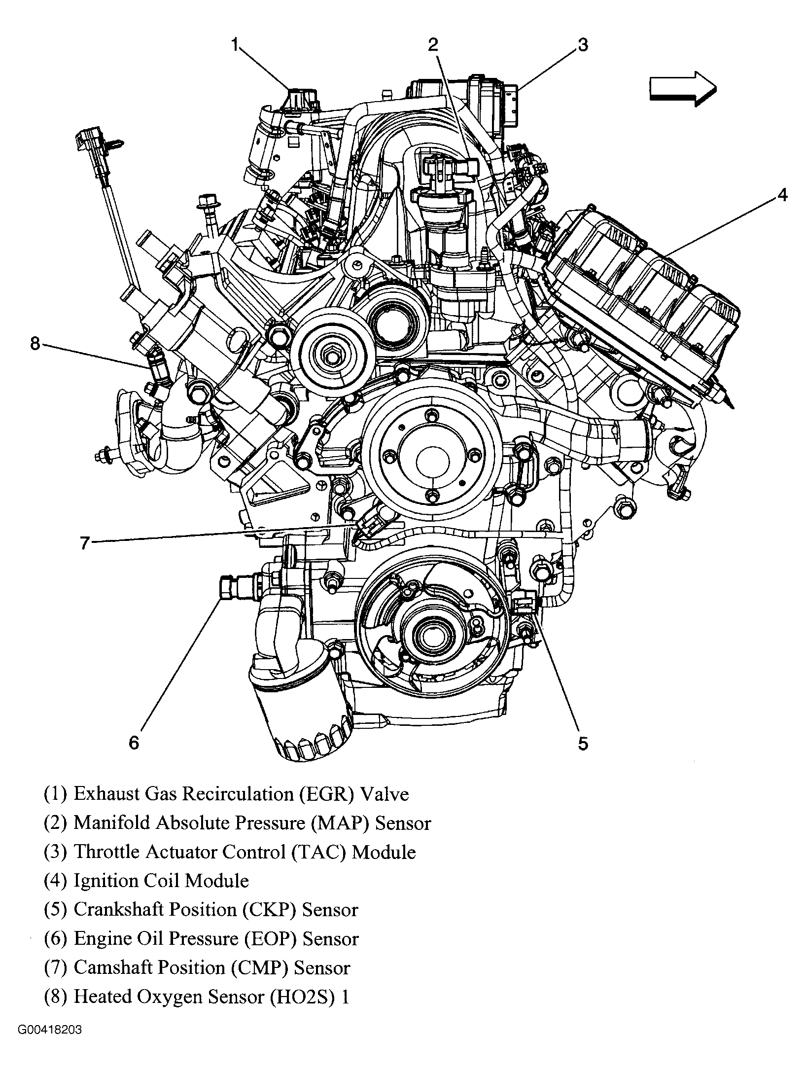 | Ignition Coil/Module 4, 6 & 8 | Top left side of engine. See Figure. |