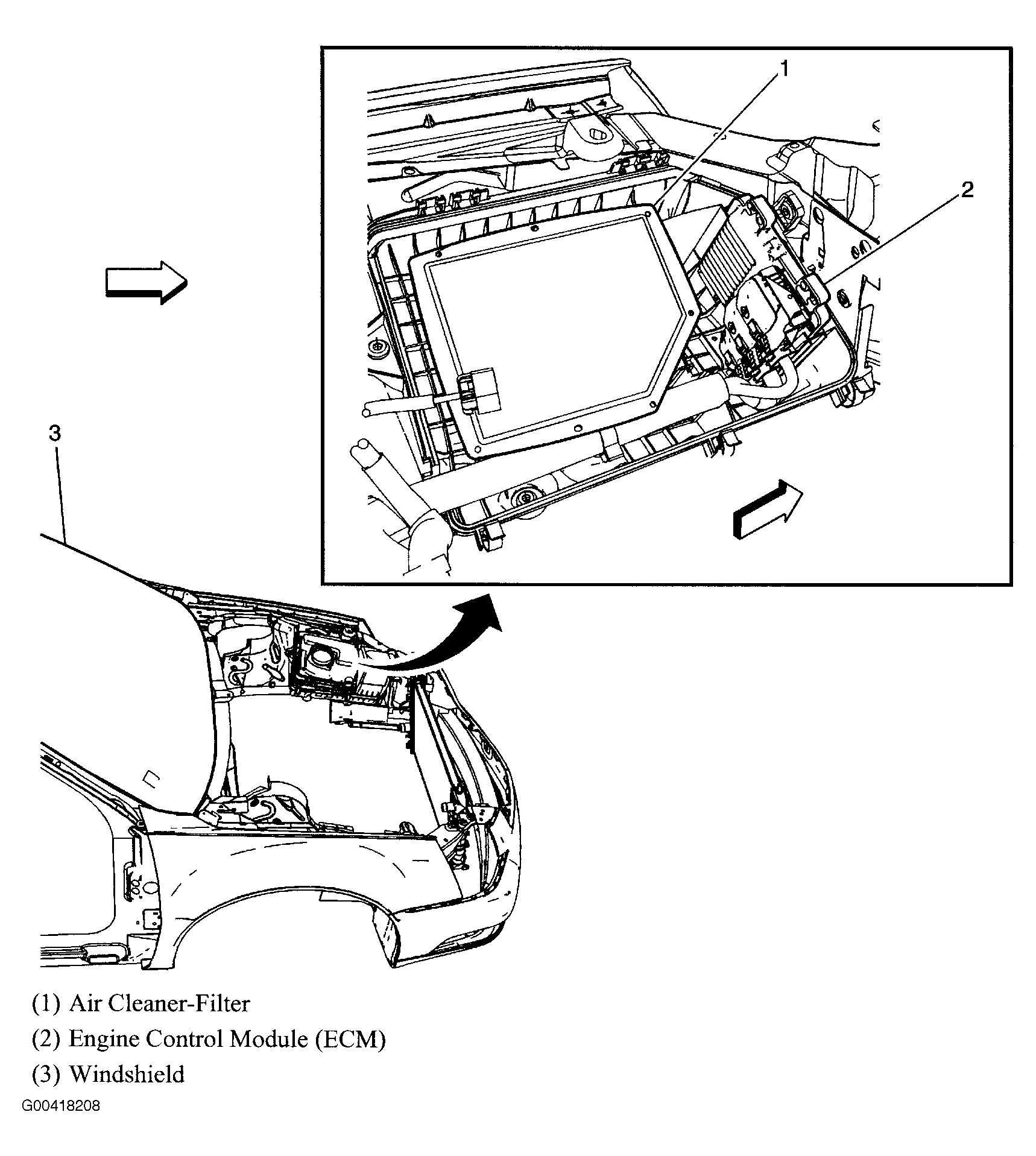 | Powertrain Control Module (PCM) (3.8L) | Left front of engine compartment, inside air cleaner housing. |