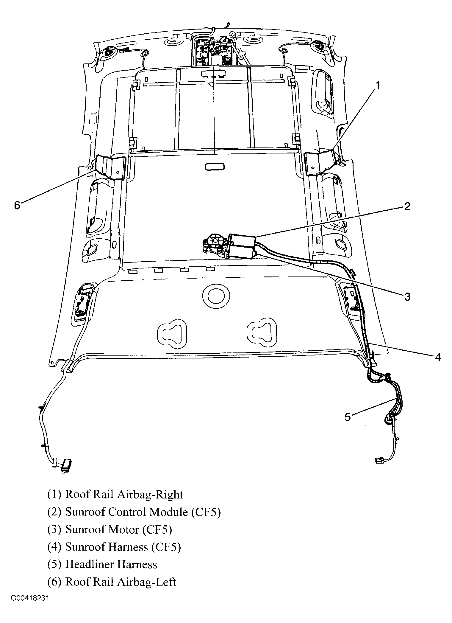 | Sunroof Control Module | Rear of sunroof opening. See Figure. |