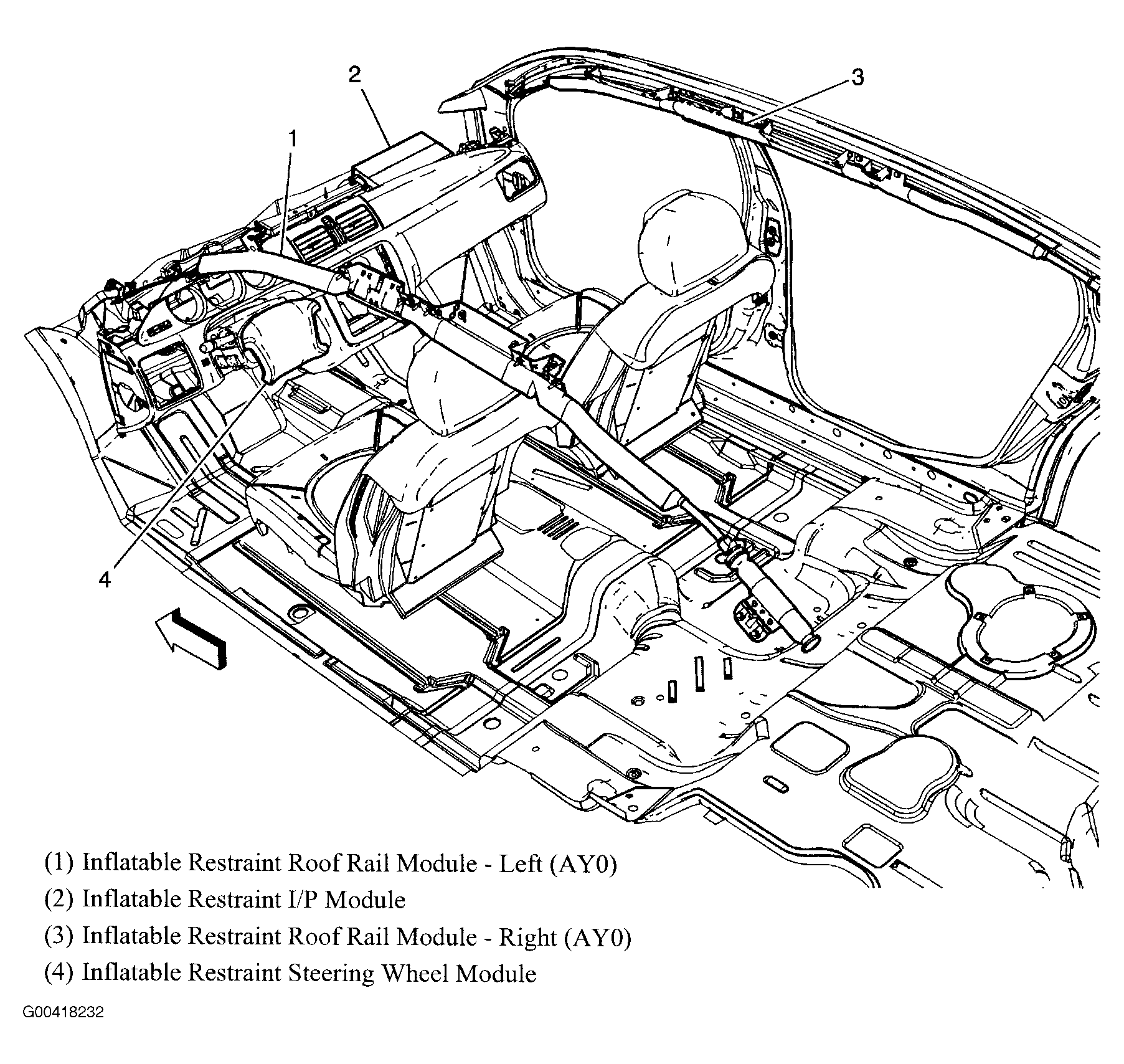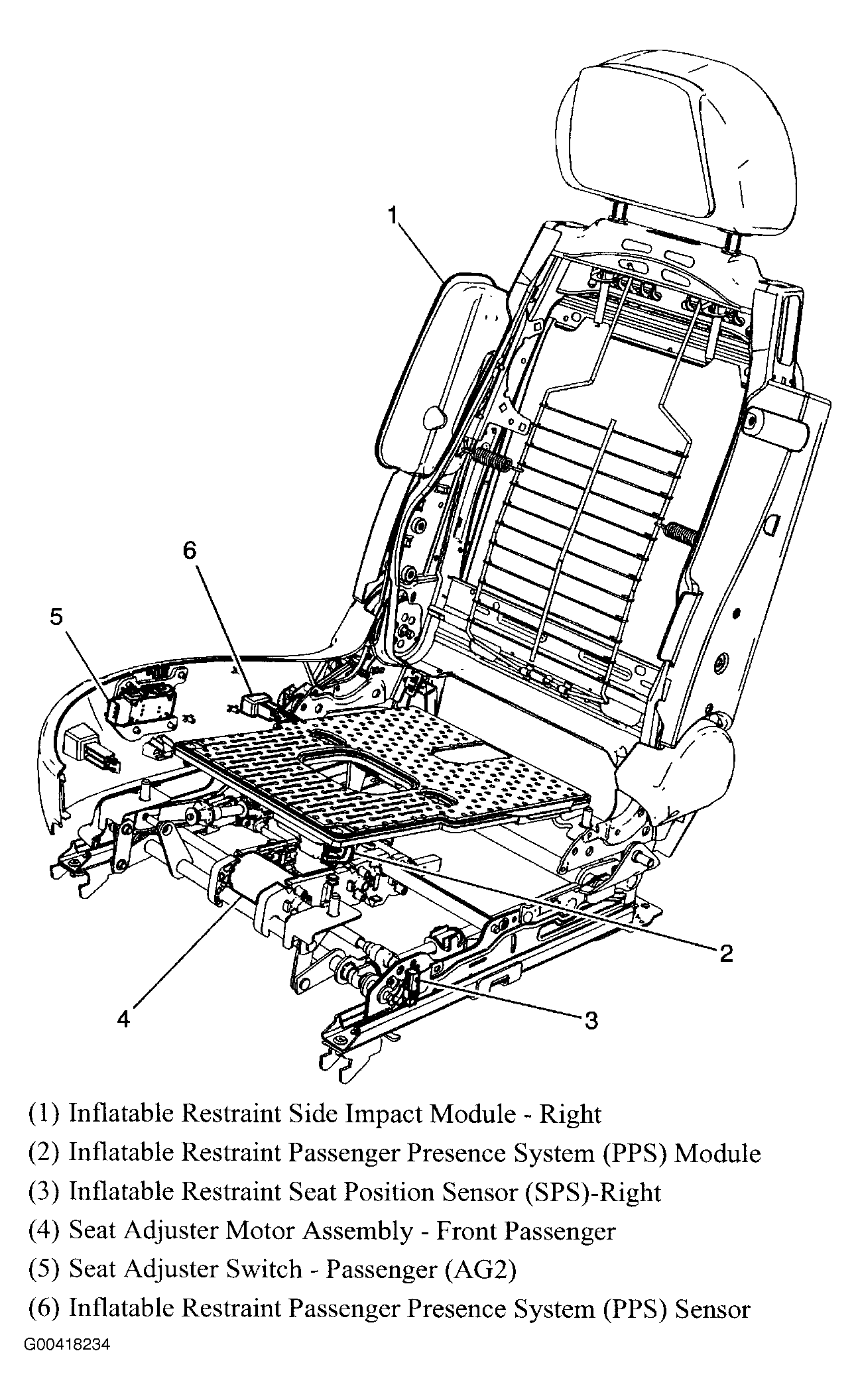 | Inflatable Restraint Passenger Presence System (PPS) Module | Under front passenger's seat. See Figure. |
