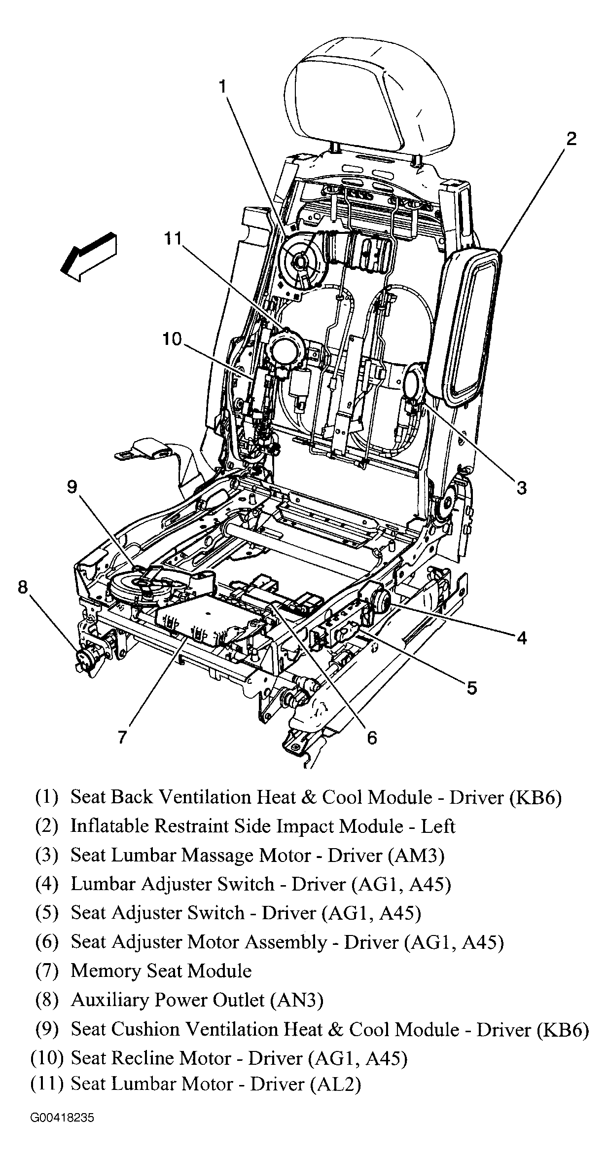 | Seat Back Ventilation Heat & Cool Module (Driver) | Right side of driver's seat back. See Figure. |