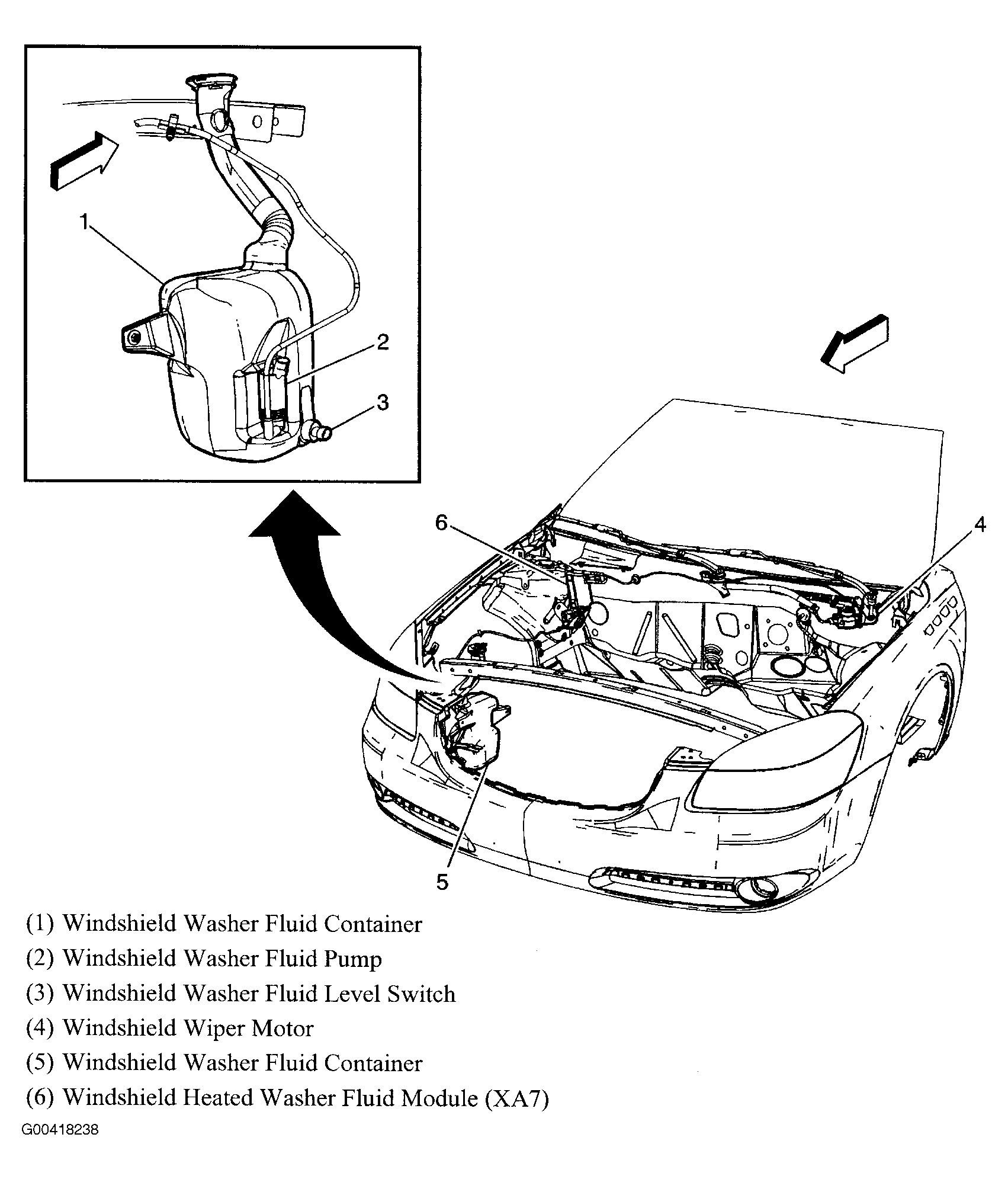 | Windshield Heated Washer Fluid Module | Right side of firewall. See Figure. |