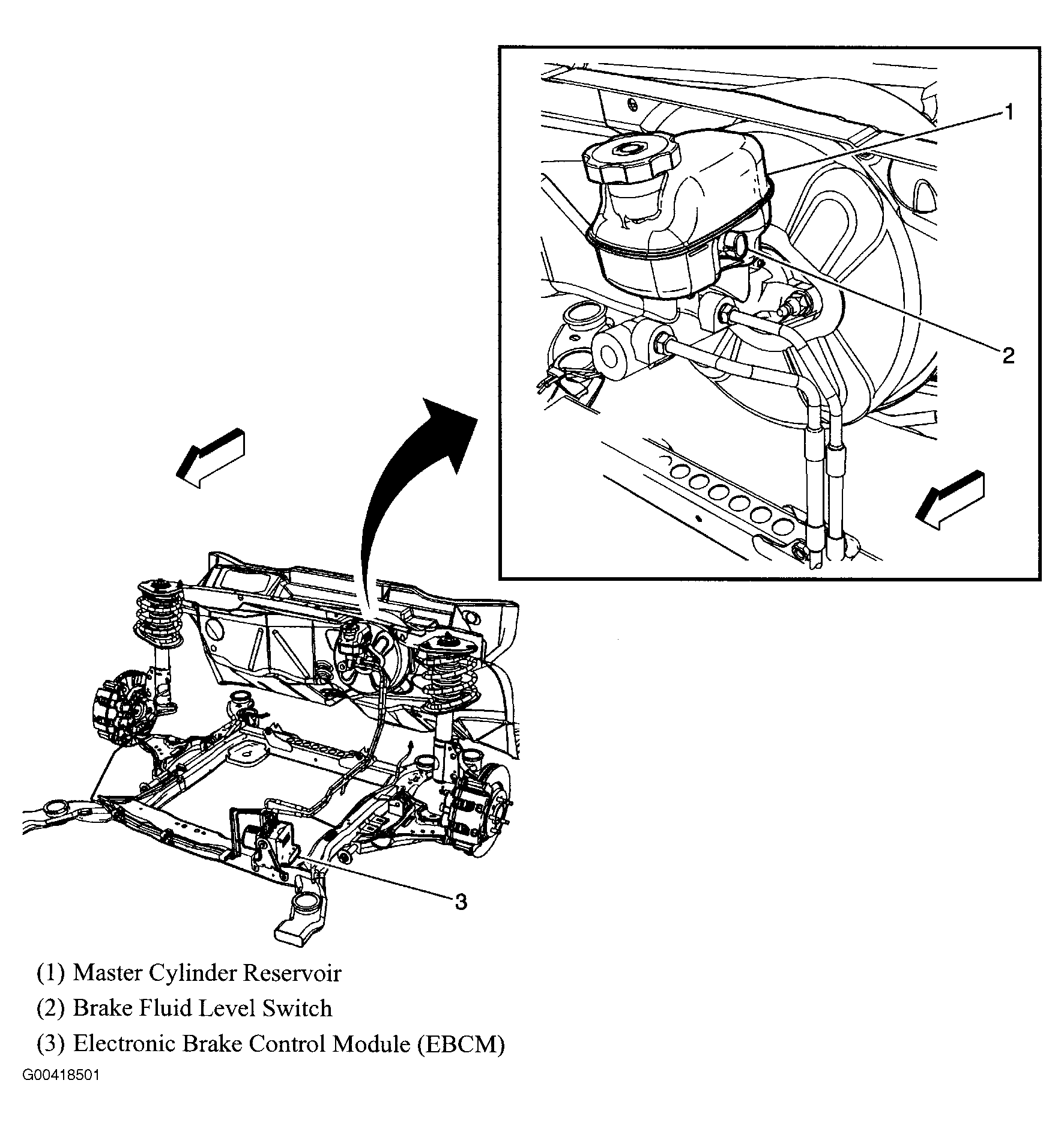 | Electronic Brake Control Module (EBCM) | Left front corner of engine compartment. See Figure. |