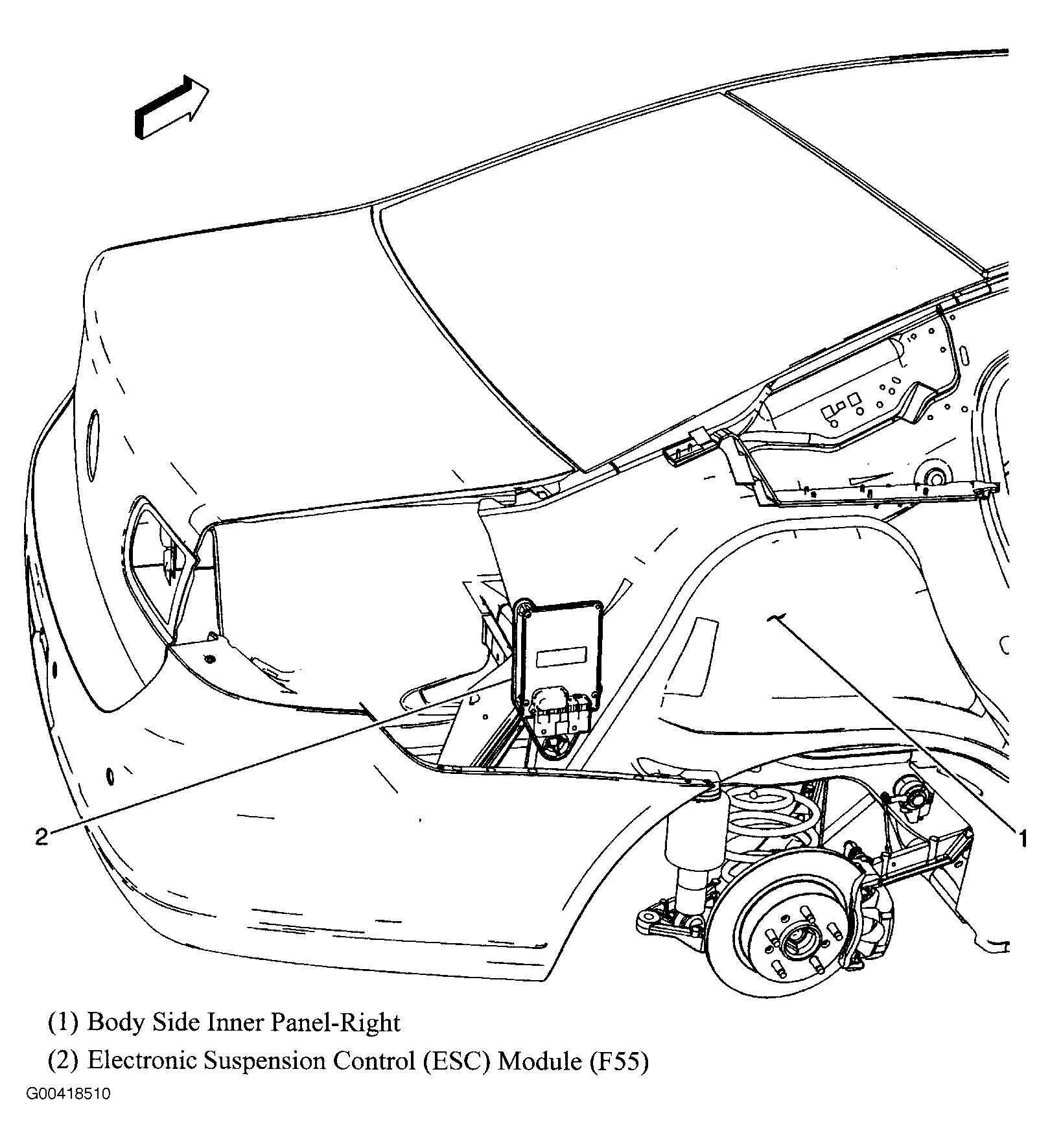 | Electronic Suspension Control (ESC) Module | Behind right wheelwell. See Figure. |