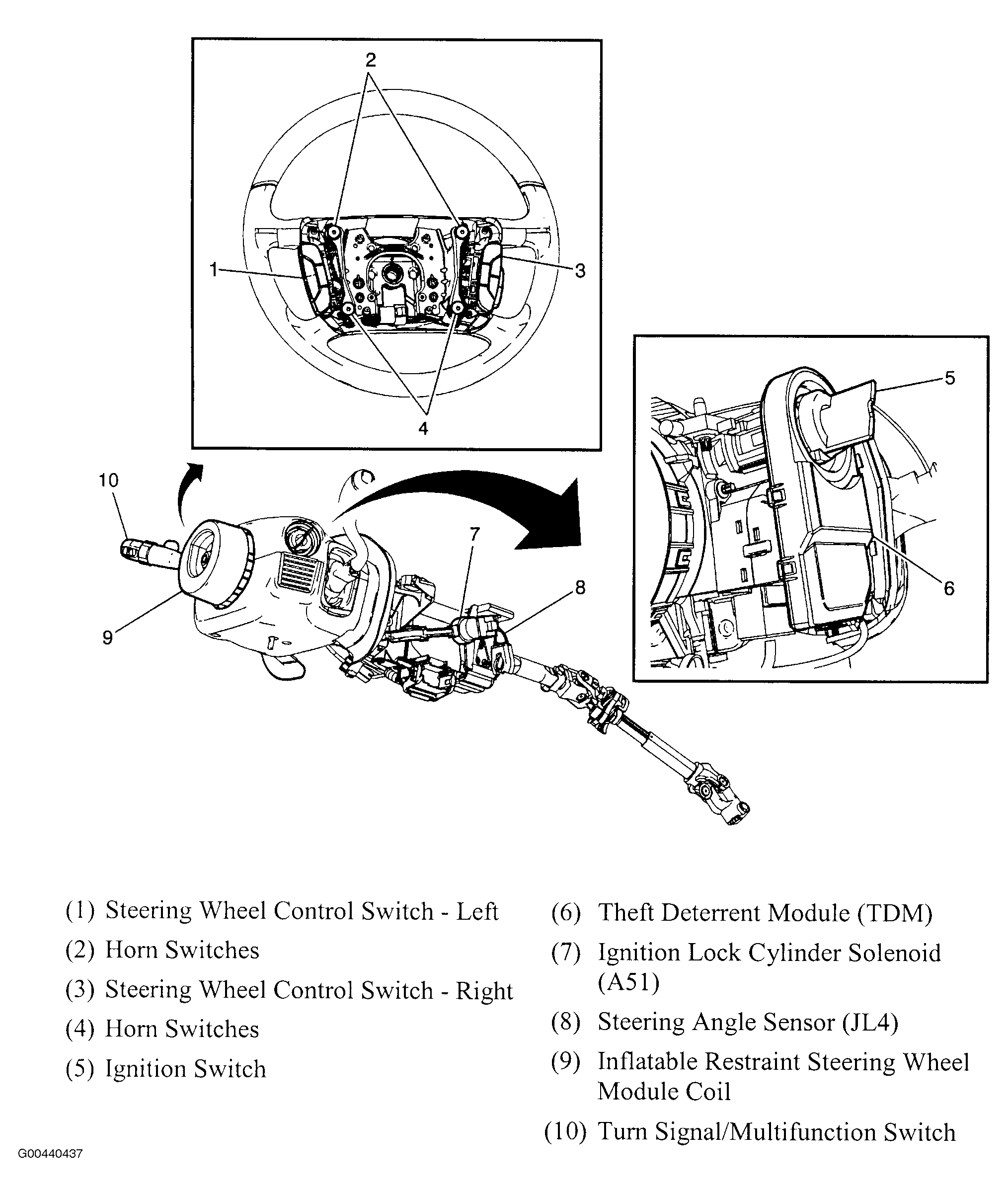 | Theft Deterrent Module (TDM) | In steering column. See Figure. |