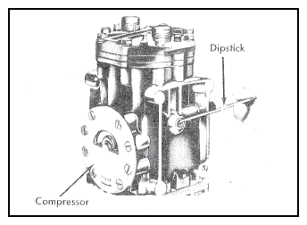In addition to checking and adjusting the compressor oil level (see Figure), certain component replacement requires additional refrigeration oil. Add refrigeration oil to replacement component as specified in "Component Oil Replacement Quantities" chart under "SERVICE SPECIFICATIONS" in this section.