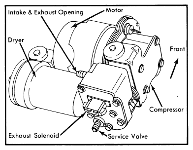 - Disconnect wiring from compressor and exhaust solenoid terminals. See Fig 1.