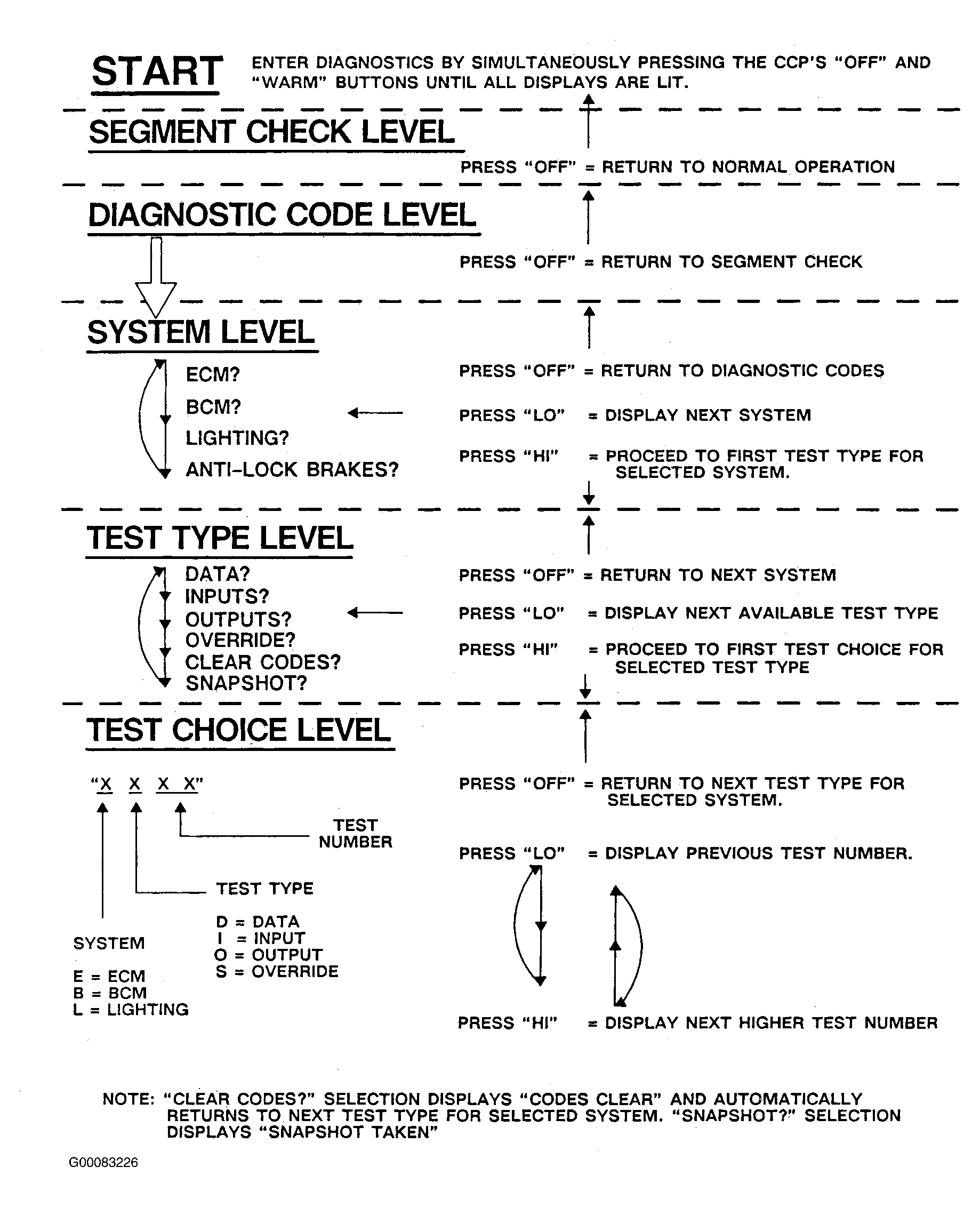 - The override test type is unique in that any other test type within the selection system may be active at the same time. After selecting an override test, touching "OFF" button will allow selection of another test type. However, the CCP will continue to display selected override. By selecting another test type and test, while at the same time touching "WARM" or "COOL" button, it is possible to monitor effect of override on different vehicle parameters.