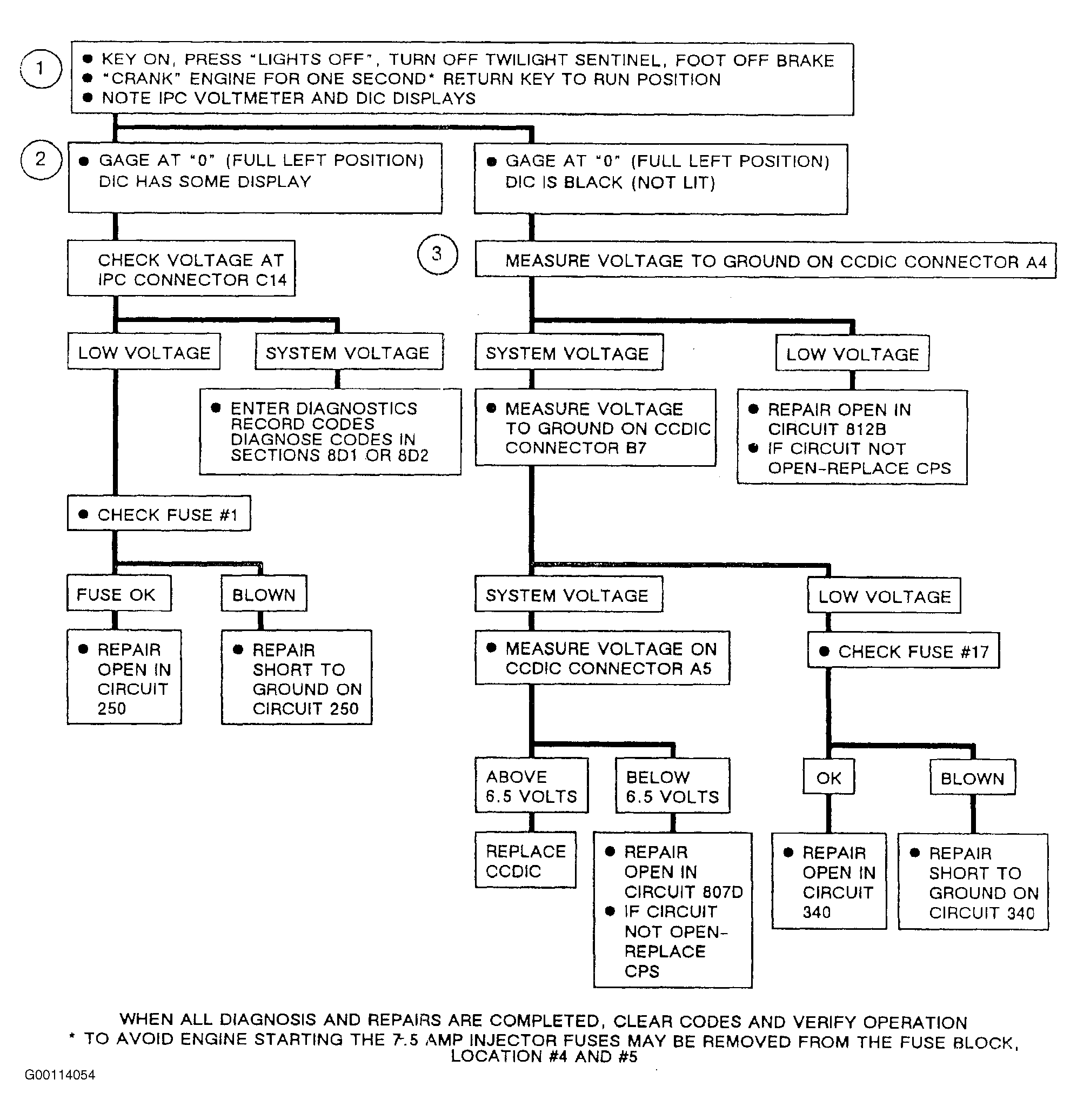 - If the DIC is black (not lit) some characters may be seen faintly, with no backlighting. This branch will check power and grounds for the CCDIC.