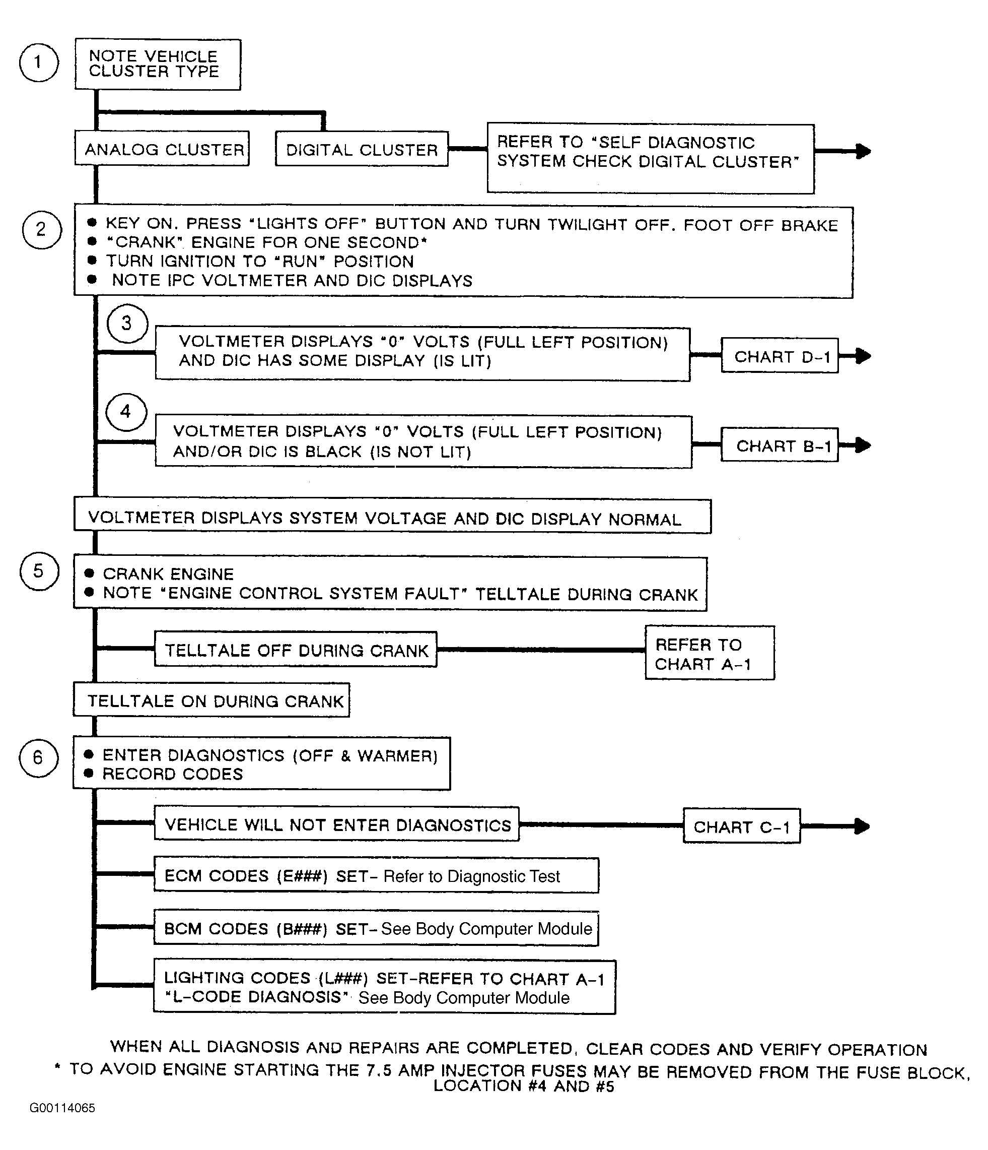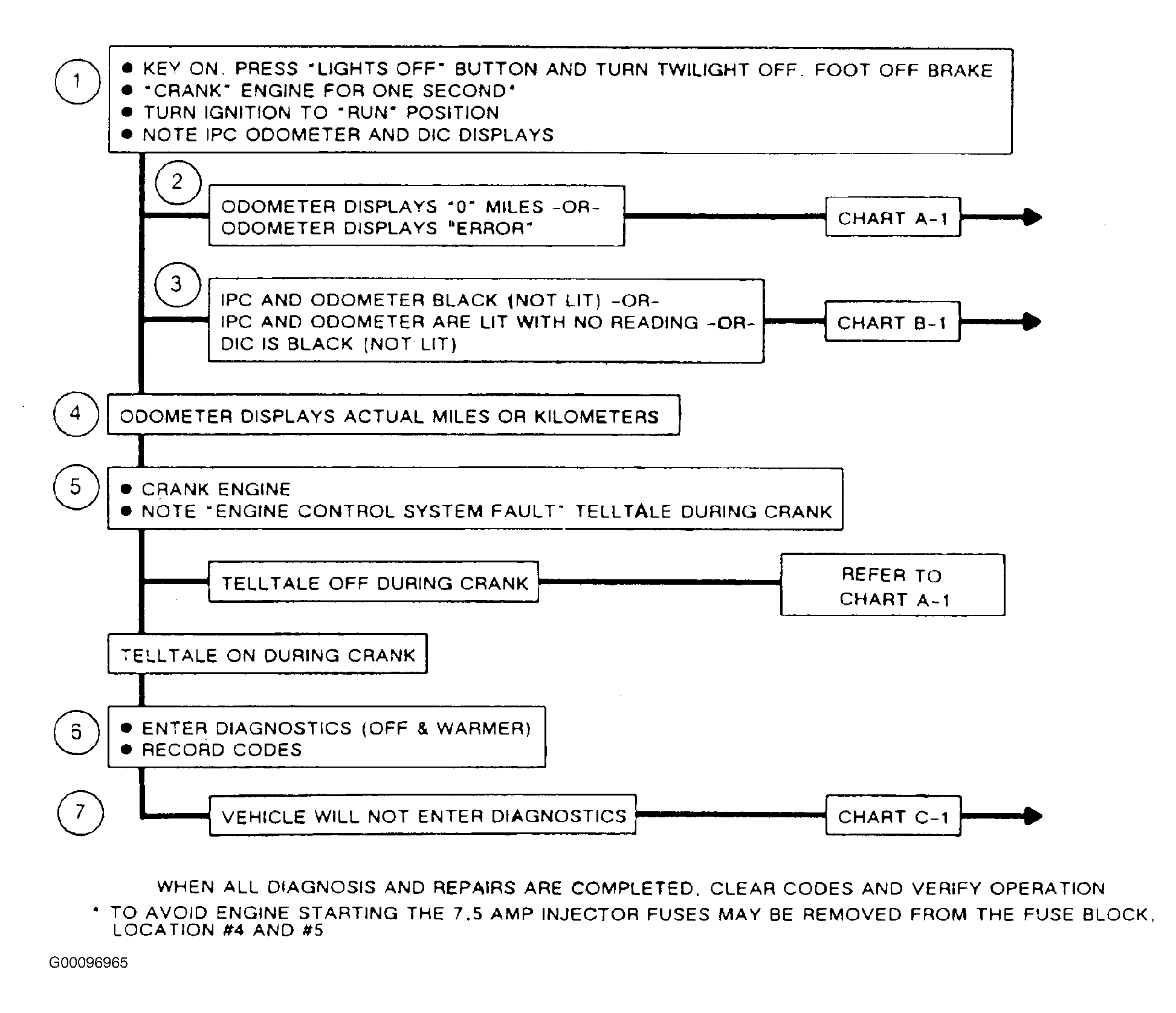 - Odometer displays and "ENGINE CONTROL SYSTEM FAULT" light work. If diagnostics cannot be entered, see CHART C-1 .