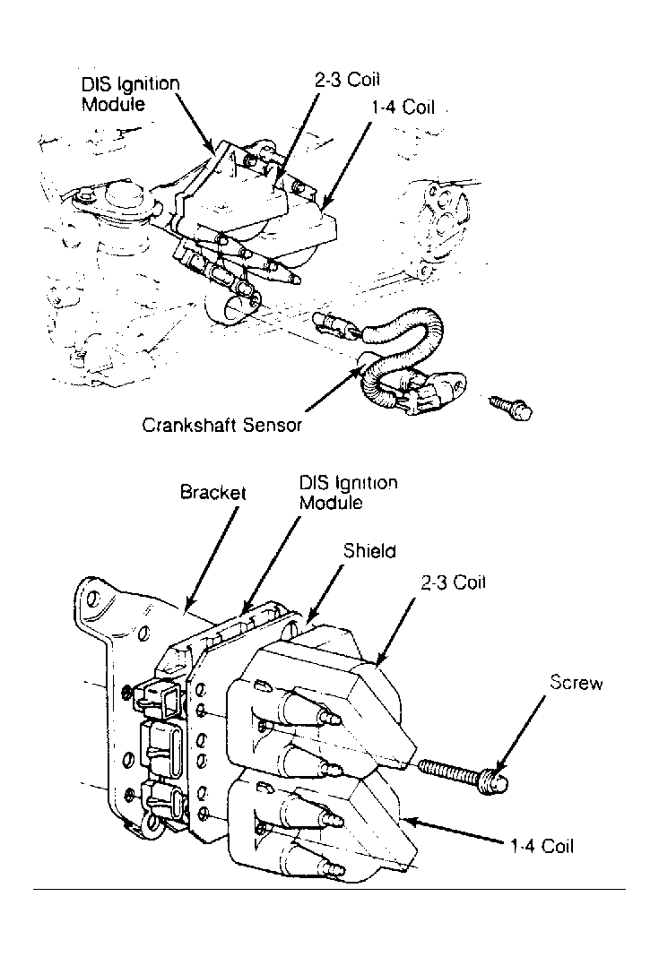 The DIS ignition module monitors crankshaft position sensor signals and, based on these signals, sends a reference signal to the ECM so that correct spark and fuel injector control can be maintained during all driving conditions.
