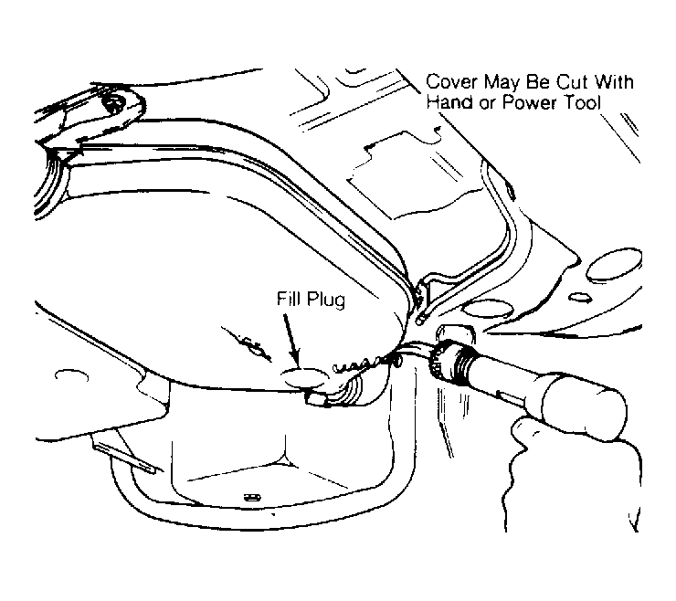1. Remove the bottom cover by making a shallow cut close to the bottom outside edge. See Fig 1 . A shallow cut is required to avoid damage to inner shell. DO NOT remove fill plug.