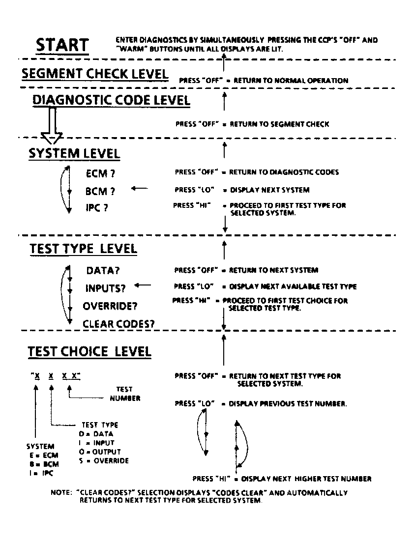 - Pressing "OFF" button on CCDIC panel will stop the system selection process and return display to beginning of trouble code sequence.
