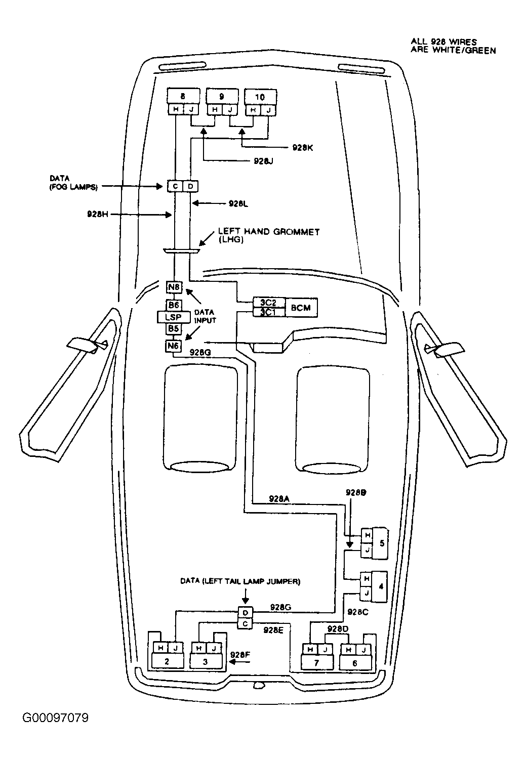 The communication between the nine OSM's, the BCM, and the Left Switch Pod is achieved via the lighting data line. The BCM will continuously scan from the Left Switch Pod to each of the nine OSM's one at a time, making commands to each, and requesting information from each. The data line is designed as a complete loop so that each element on the data circuit has two data circuit inputs. This loop design will allow the circuit to operate with one open in the circuit. Fig 1 details the data circuit.
