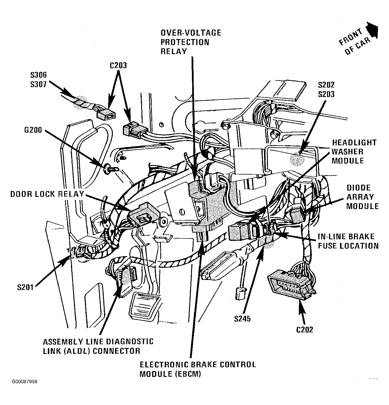 | Electronic Brake Control Module | Behind Left Side Of Instrument Panel, Left Of Steering Column. See Fig 1 . |