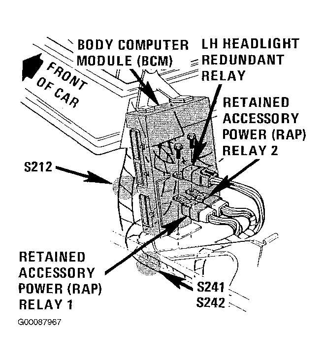 | RAP Relay No. 2 | Behind Right Side Of Instrument Panel, Above Heater & A/C Plenum. See Fig 2 . |