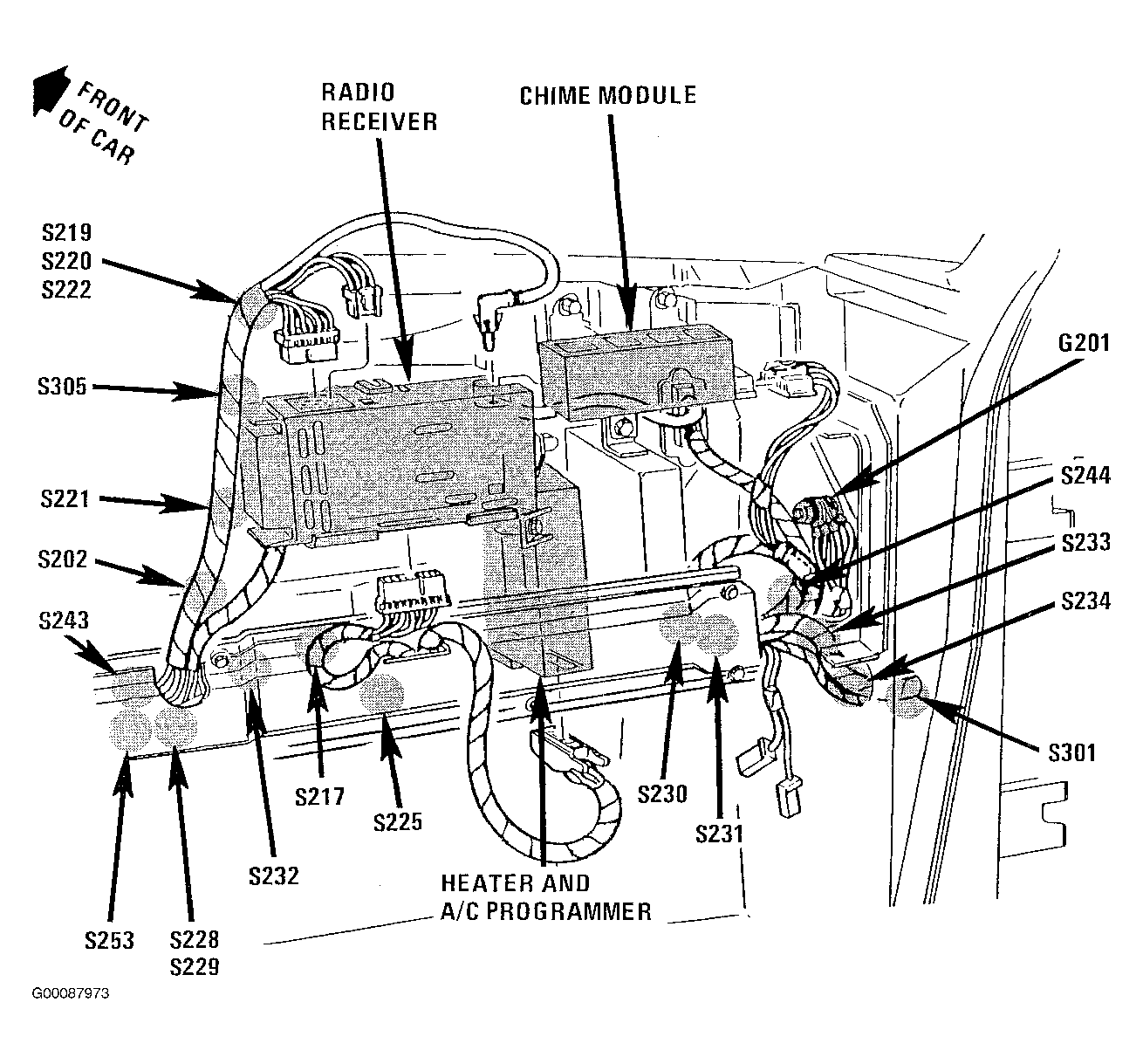 | Theft Deterrent Controller | Behind Right Side Of Instrument Panel, Above Heater & A/C Plenum. See Fig 14 . |