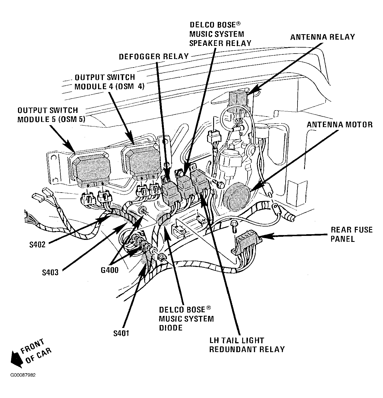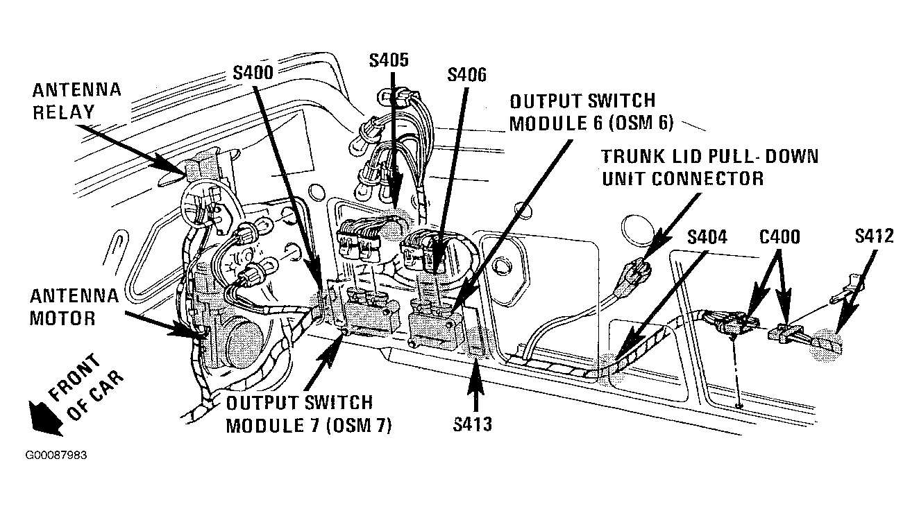 | Output Switch Module (OSM) No. 4 | Right Side Of Trunk, Above Rear Wheel House. See Fig 11 . |