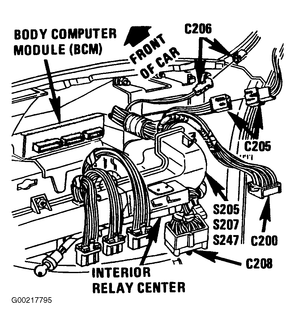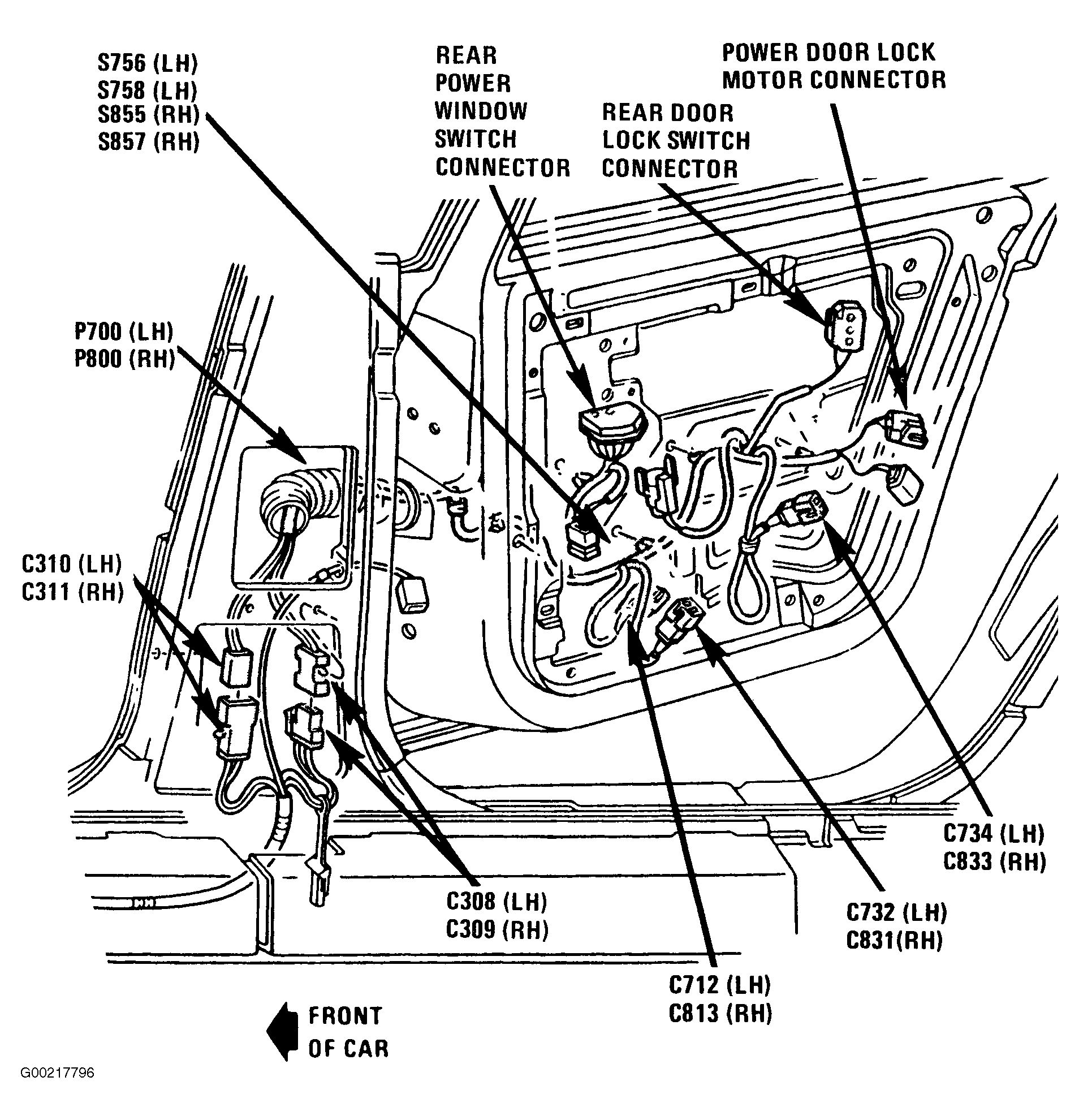 Body main harness, in LH front door, ten inches from power window switch. See Fig 1 |