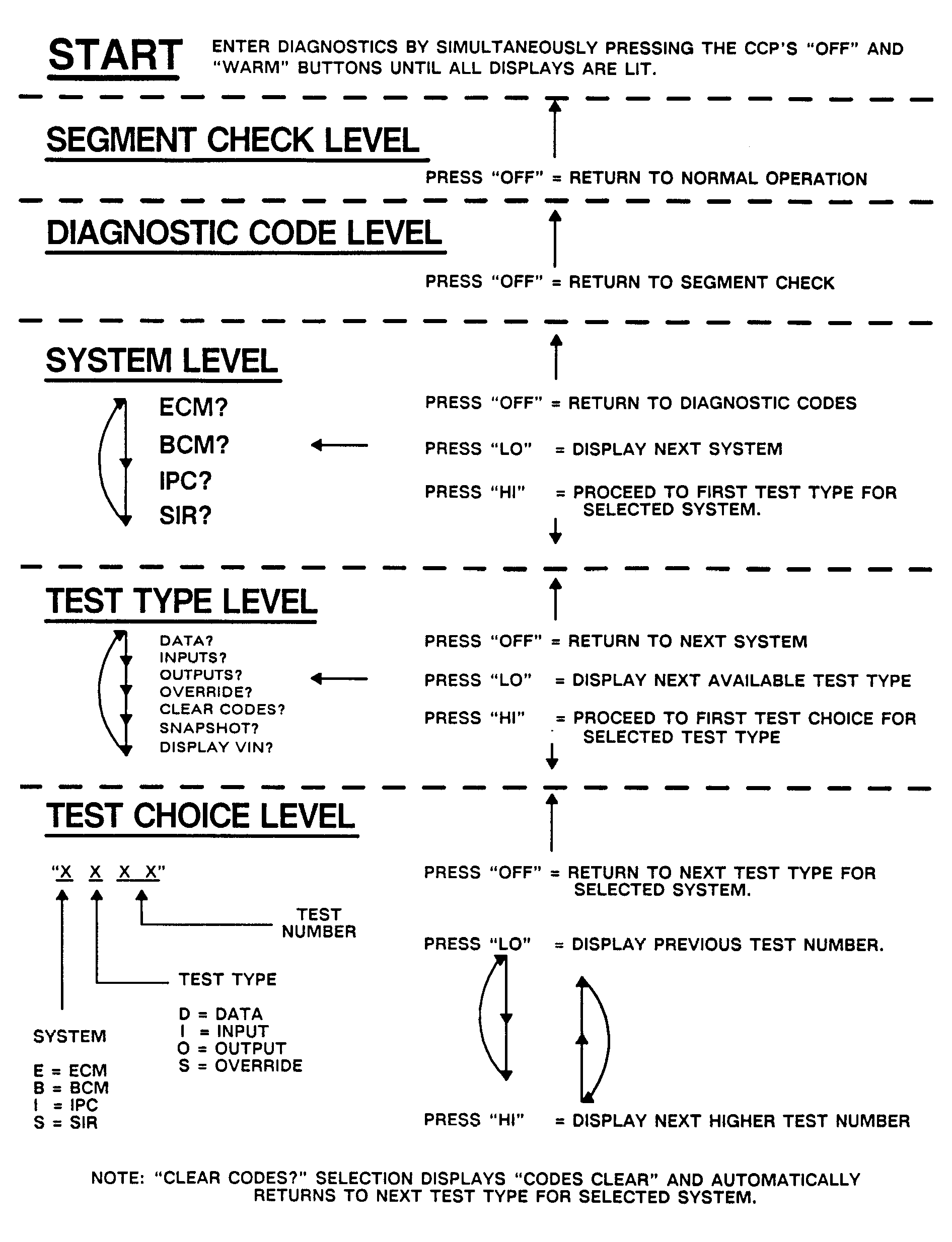 1. Depressing OFF button on the ECC will stop the system selection process and return the display to the beginning of the trouble code sequence.