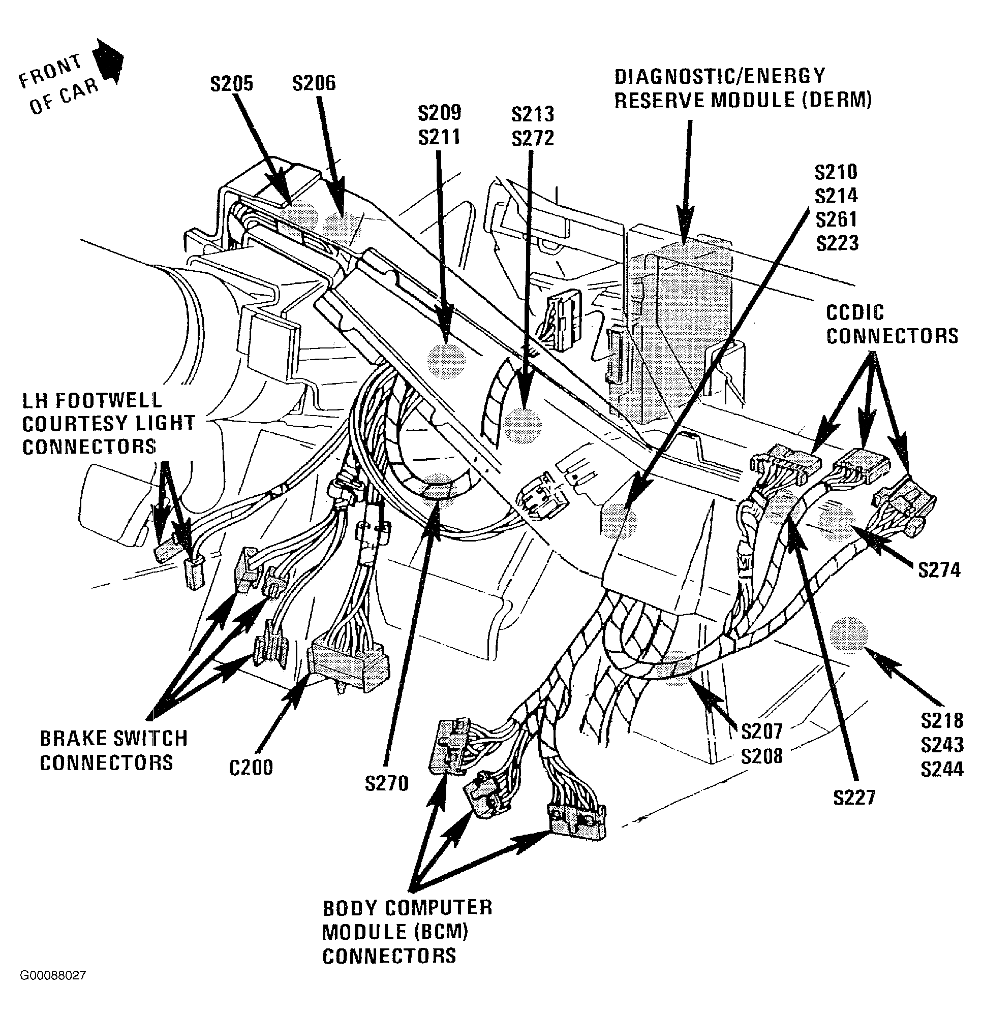 | Diagnostic Energy Reserve Module (DERM) | Behind Left Of Instrument Panel, On Bracket Above Brake Pedal. See Fig 3 . |