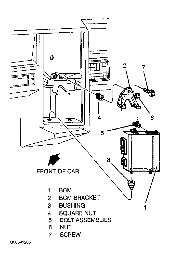 Remove climate control panel/driver information center assembly. See COMBO-PANEL (CLIMATE CONTROL DRIVER INFORMATION CENTER) in INSTRUMENT PANEL & GAUGES article in ACCESSORIES & EQUIPMENT. Remove BCM bracket. Disconnect and remove BCM. See Fig 1 . To install, reverse removal procedure.