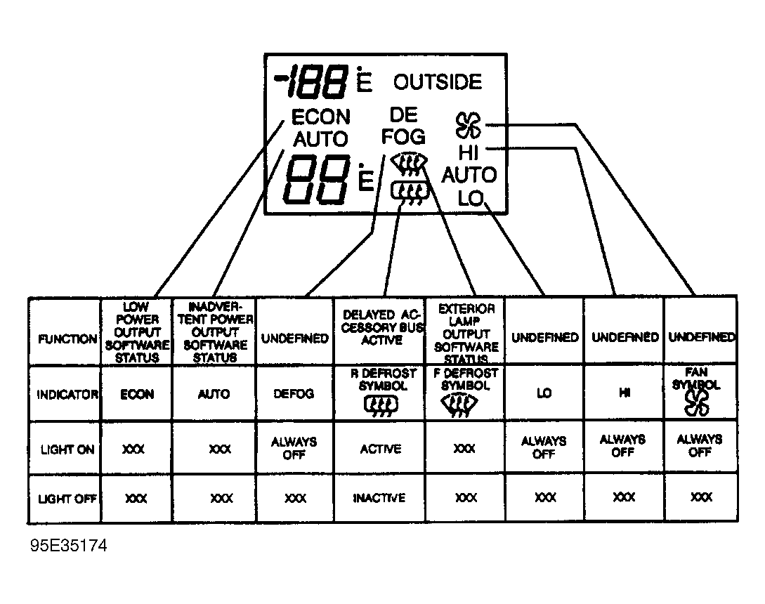 Upon entering PZM level of diagnostic mode, indicator lights on Climate Control Panel (CCP) are used to indicate status of certain inputs and operating modes. Operational status of these components is indicated by corresponding status light being on or off. See Fig 1