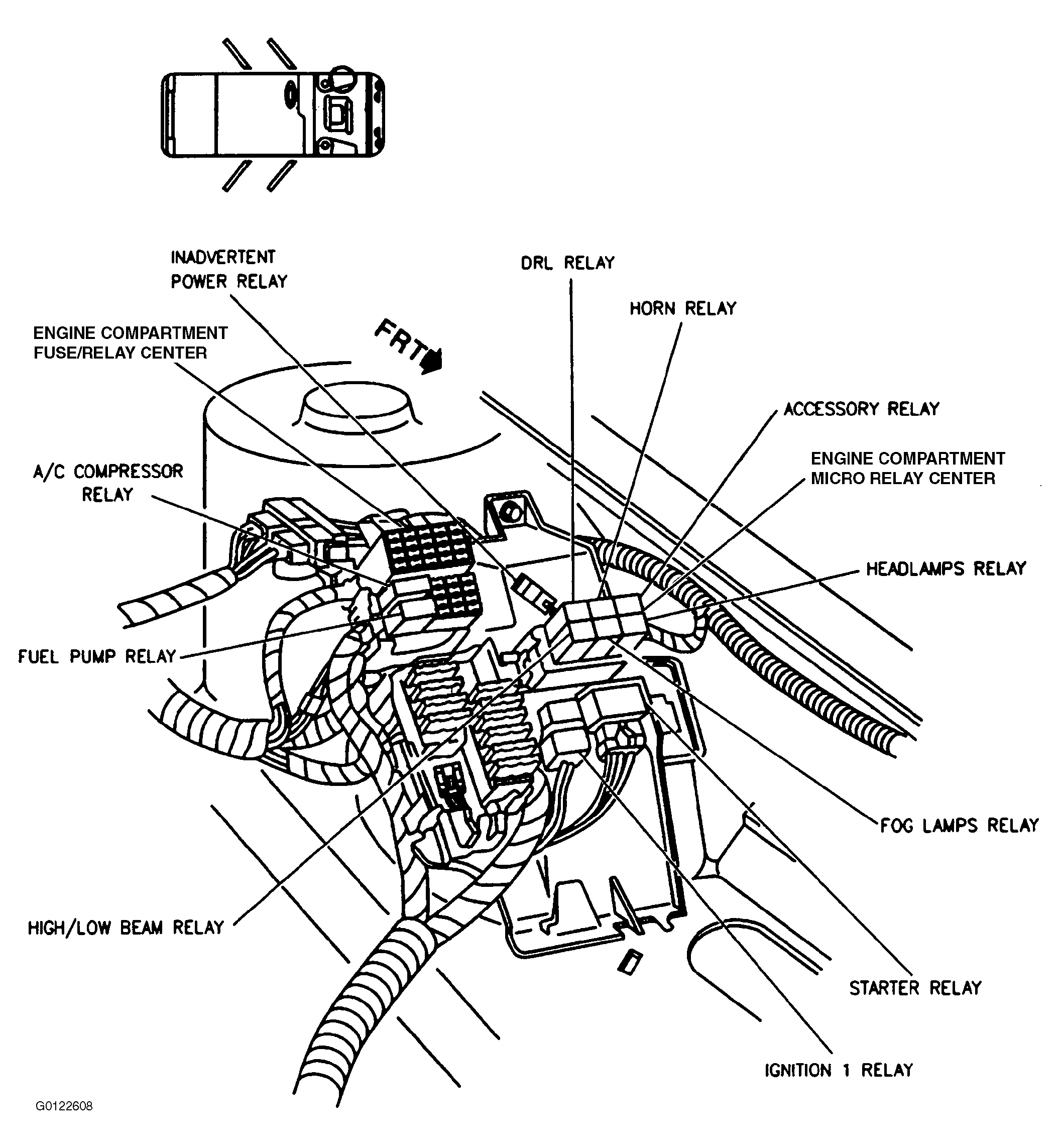 | Engine Compartment Micro Relay Center | Left side of engine compartment. See Figure . |