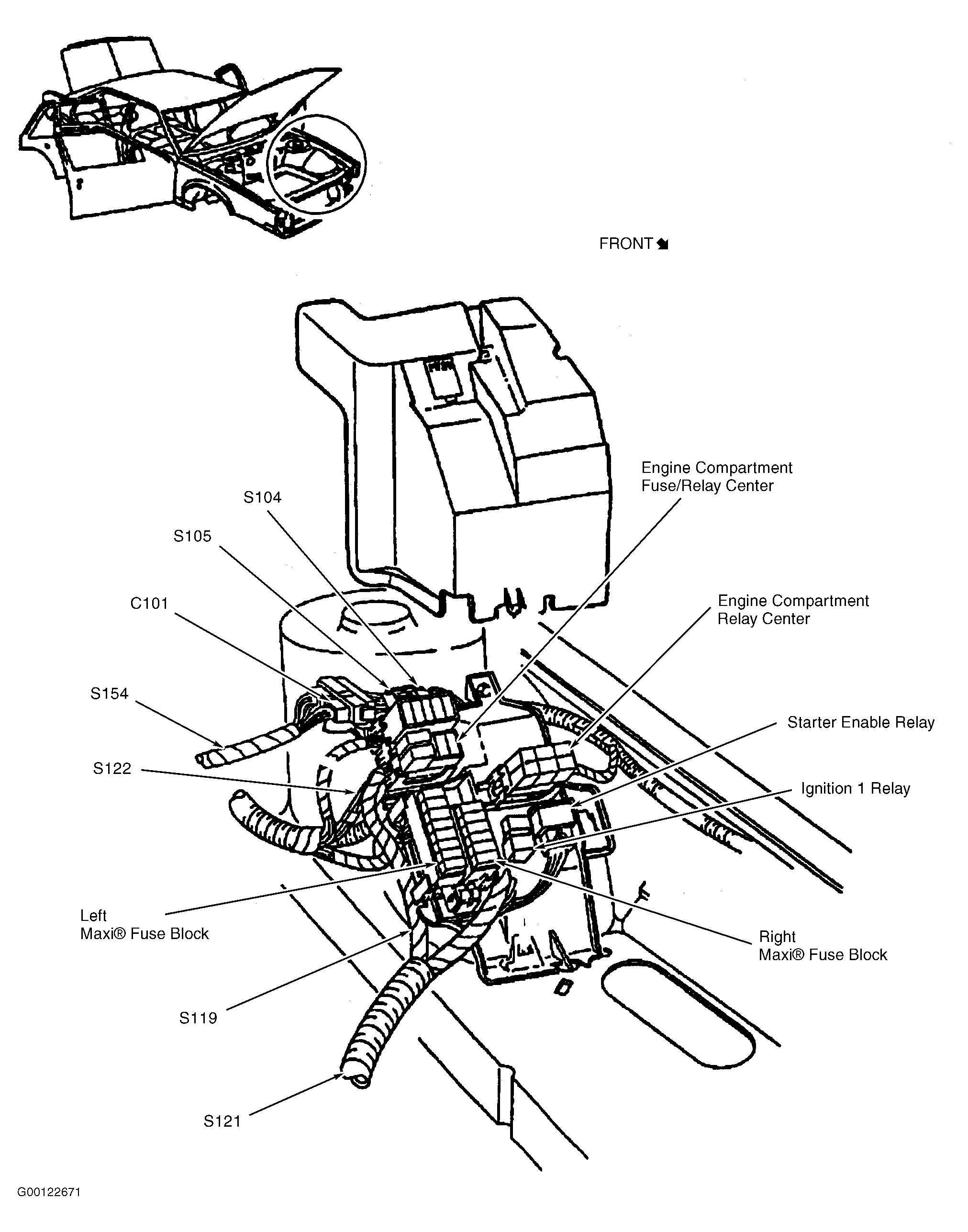| Engine Compartment Relay Center | Left side of engine compartment. See Figure . |