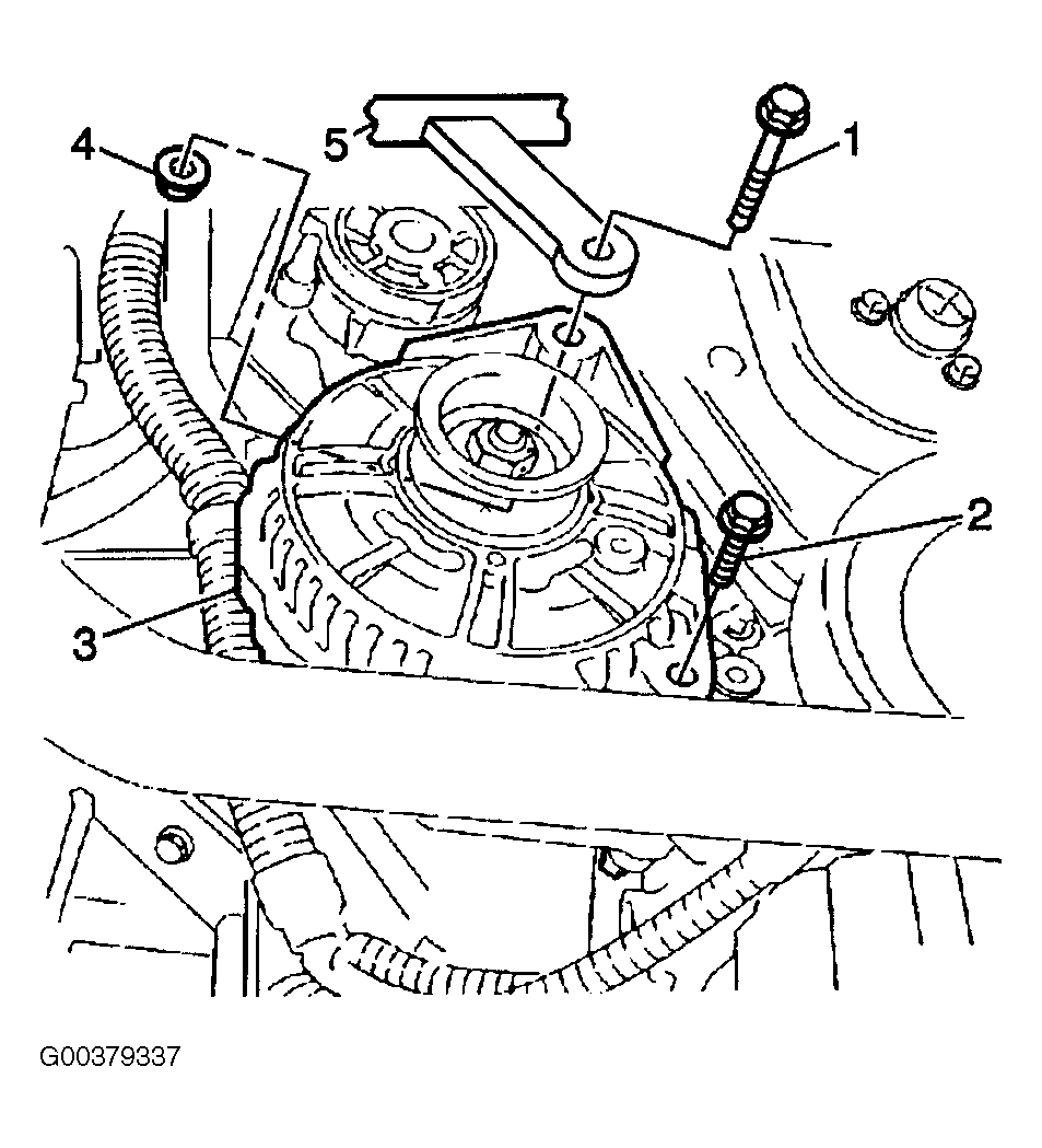 - Install the upper mounting nut (4). Tighten the upper mounting bolt and nut to 40 N.m (30 lb ft).