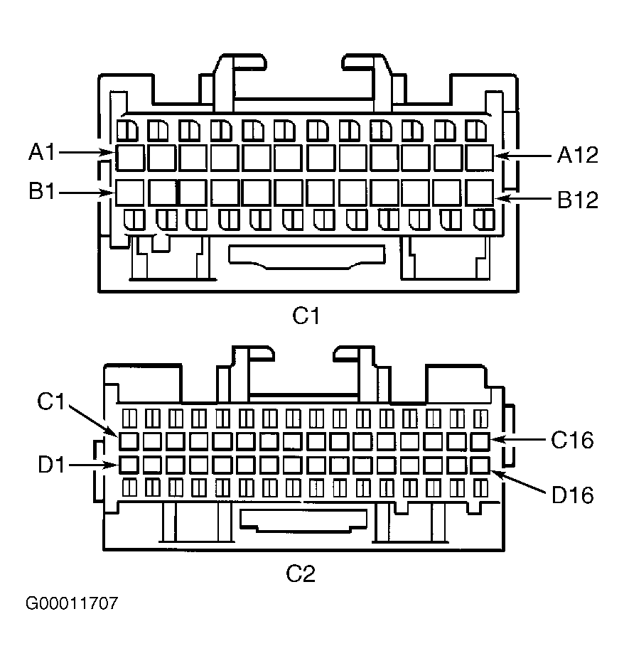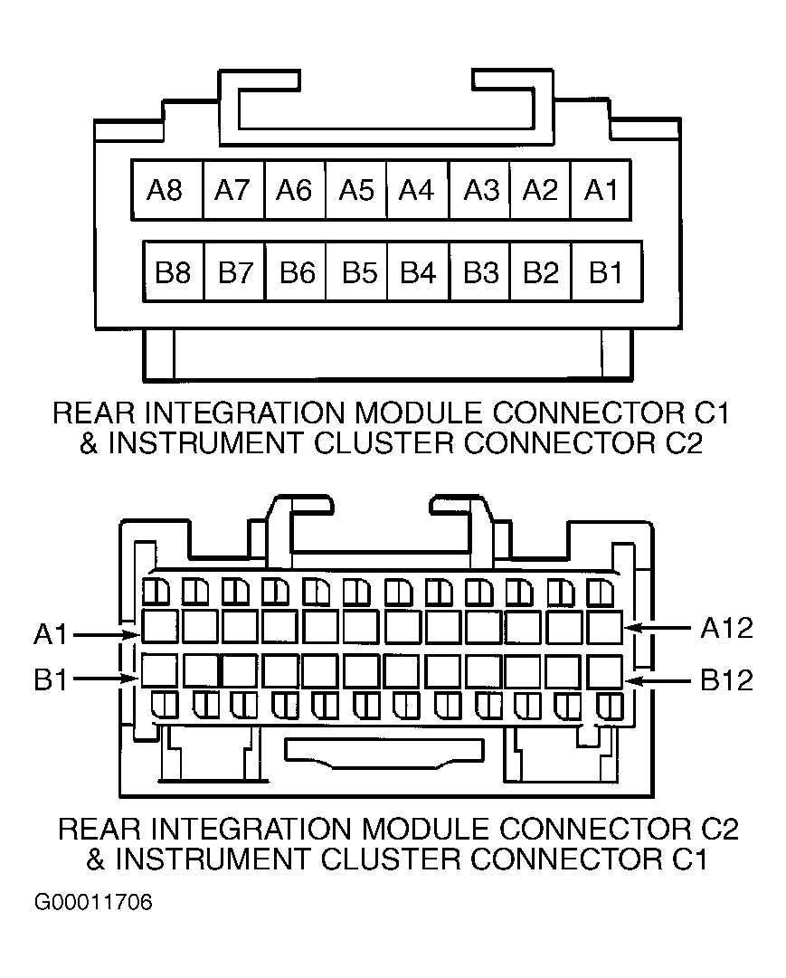 - Check for poor connections at IPC connector C1 terminal B8 and C2 terminal B8. If connection is okay, go to next step. If faulty connection is found and repaired, go to step 78