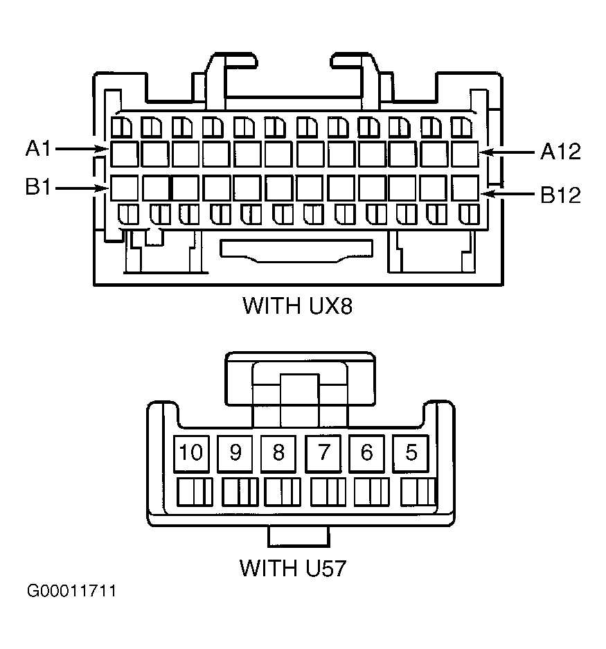 - Turn ignition off. Reconnect IPM connectors. Disconnect navigation data processor (if equipped w/UY4) connector or radio (if not equipped w/UY4) connectors. See Figure