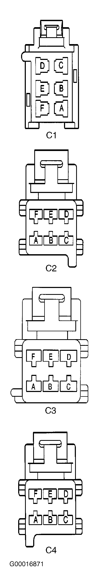 - Turn ignition off. Disconnect PFDM connectors. Turn ignition on. Check for short to ground or short to voltage in Purple wire between PFDM connector C2 terminal "F" and passenger's front window switch connector terminal No. 10. See Fig 1