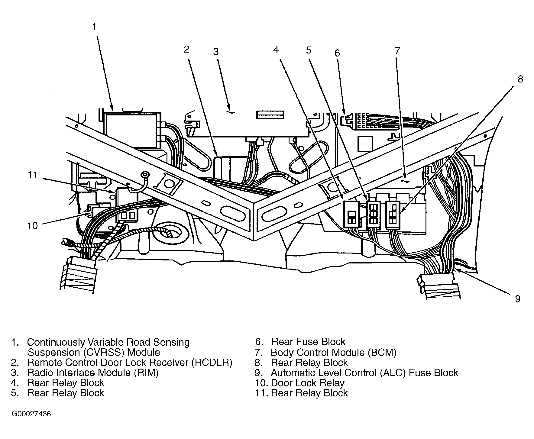 | Continuously Variable Road Sensing Suspension (CVRSS) Module | Behind upper right side of rear seat back. See Figure . |