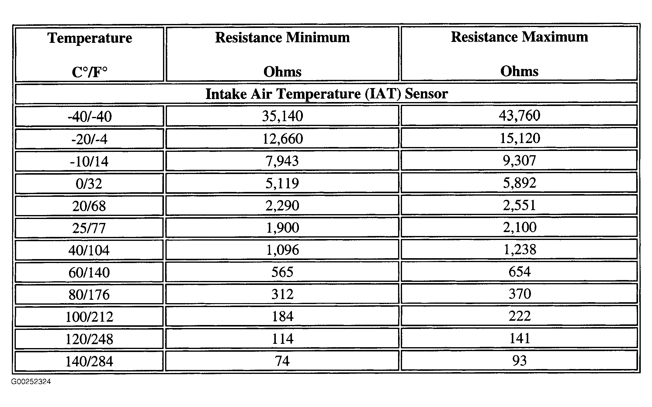Fig 1: Intake Air Temperature Sensor - Temperature Vs. Resistance Table
