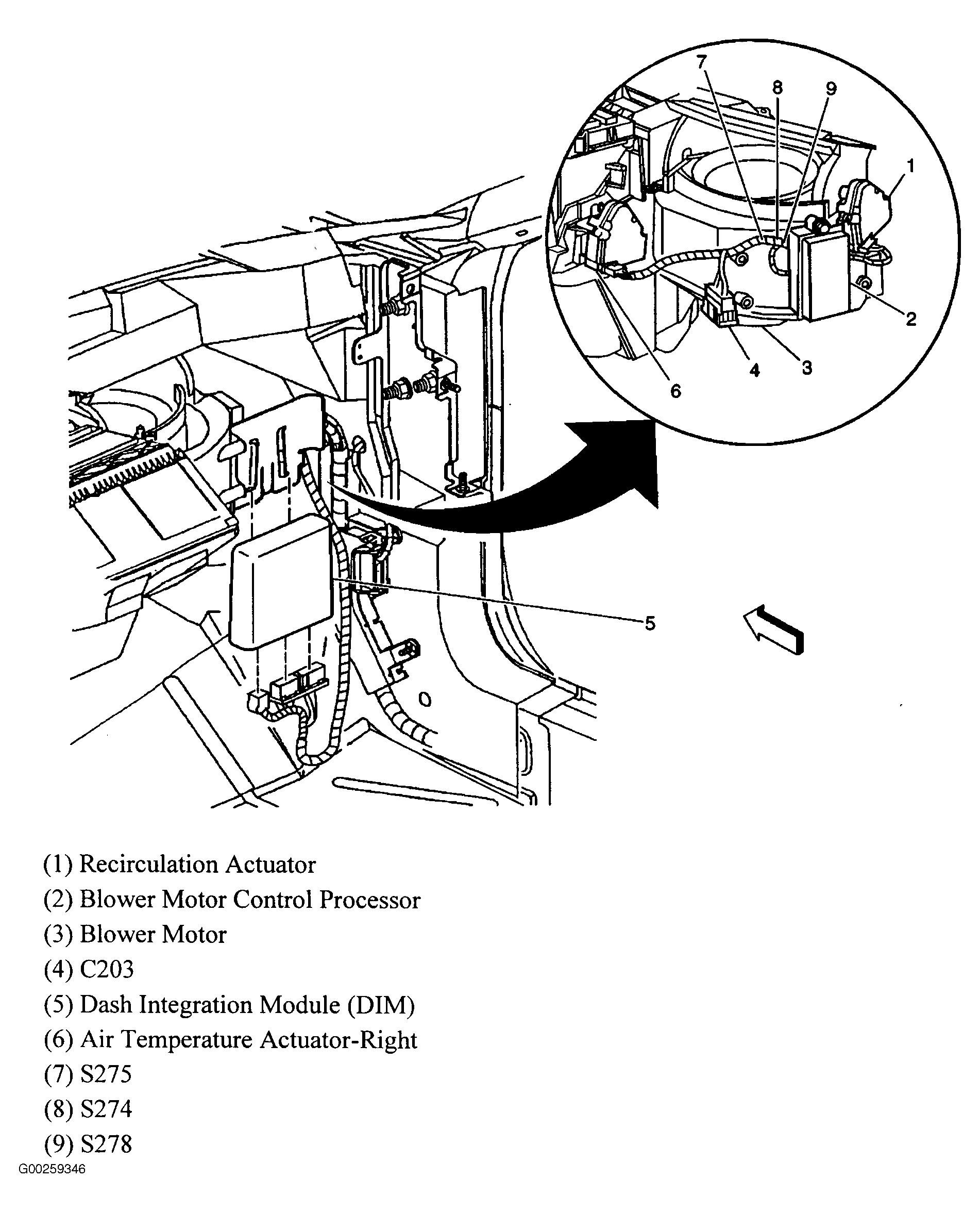 | Blower Motor Control Processor | Under right side of dash, near center heater outlets. See Figure . |