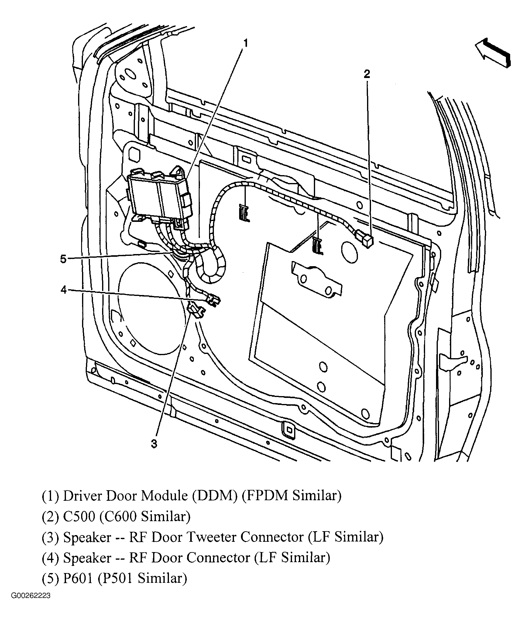 | Driver Door Module | In front of left front door, near radio speaker. See Figure . |