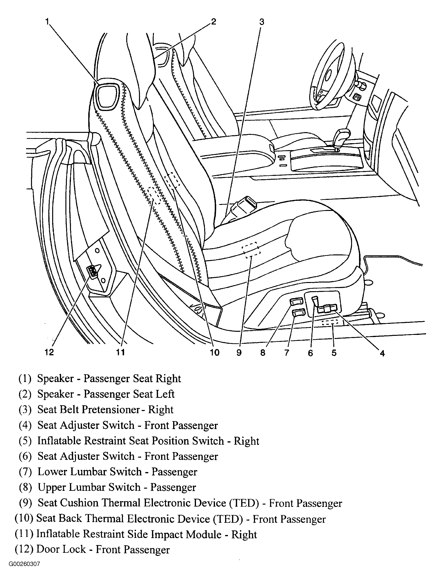 Inflatable Restraint Side Impact Module-Right Right side of passenger's seat. See Figure .