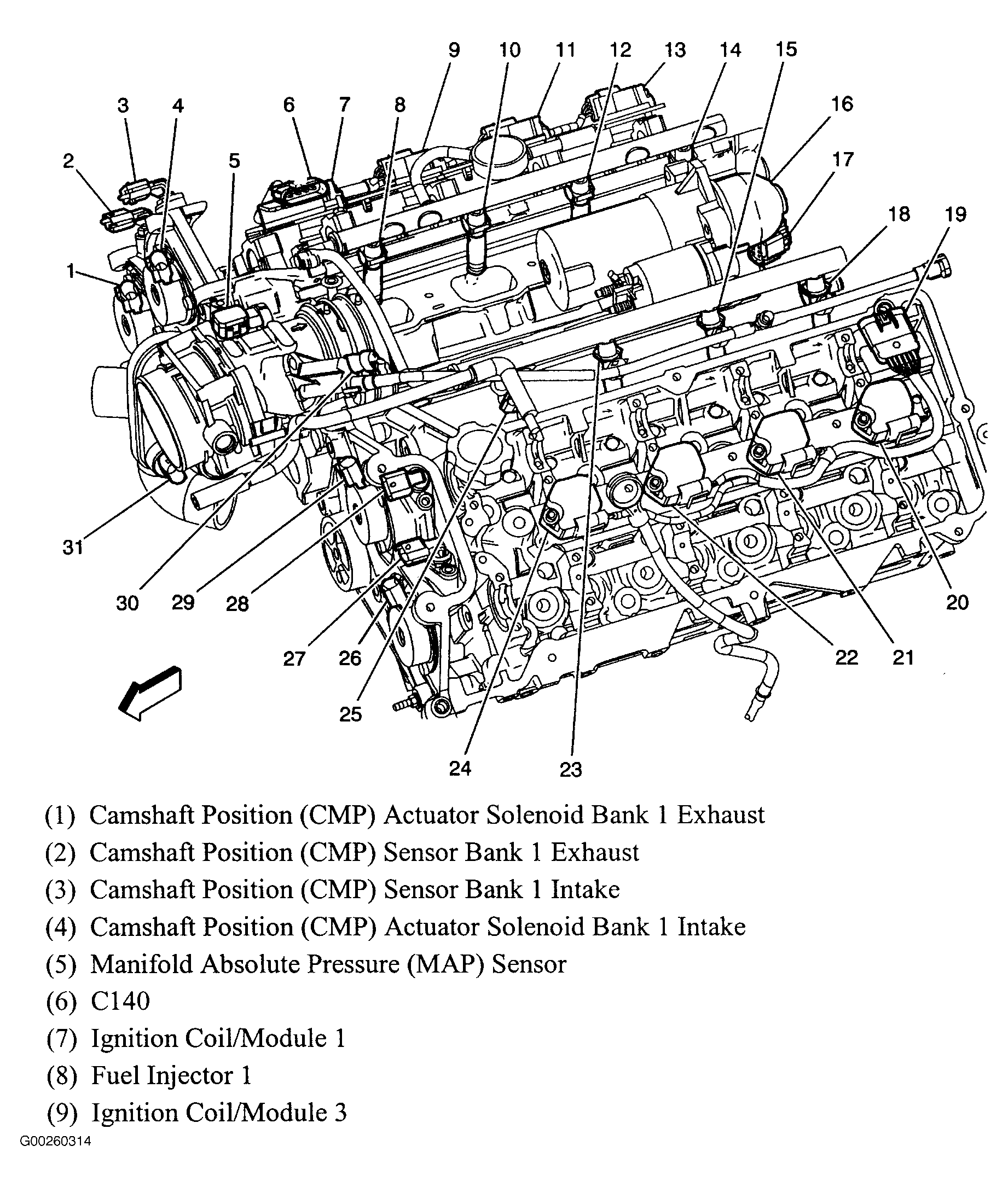 Ignition Coil/Module 8 Top left rear of engine. See Figure .