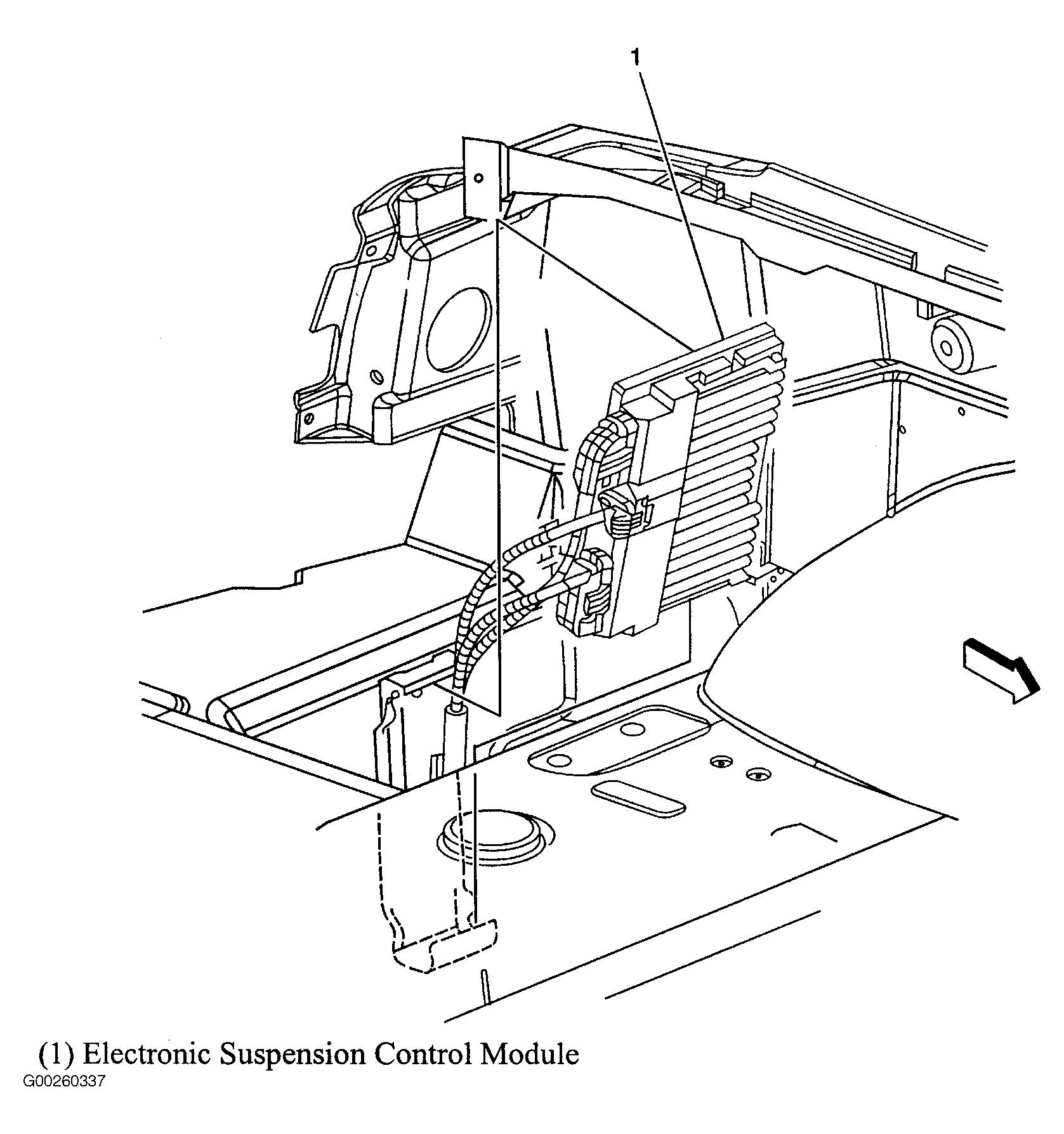 Electronic Suspension Control Module Left rear of luggage compartment. See Figure .