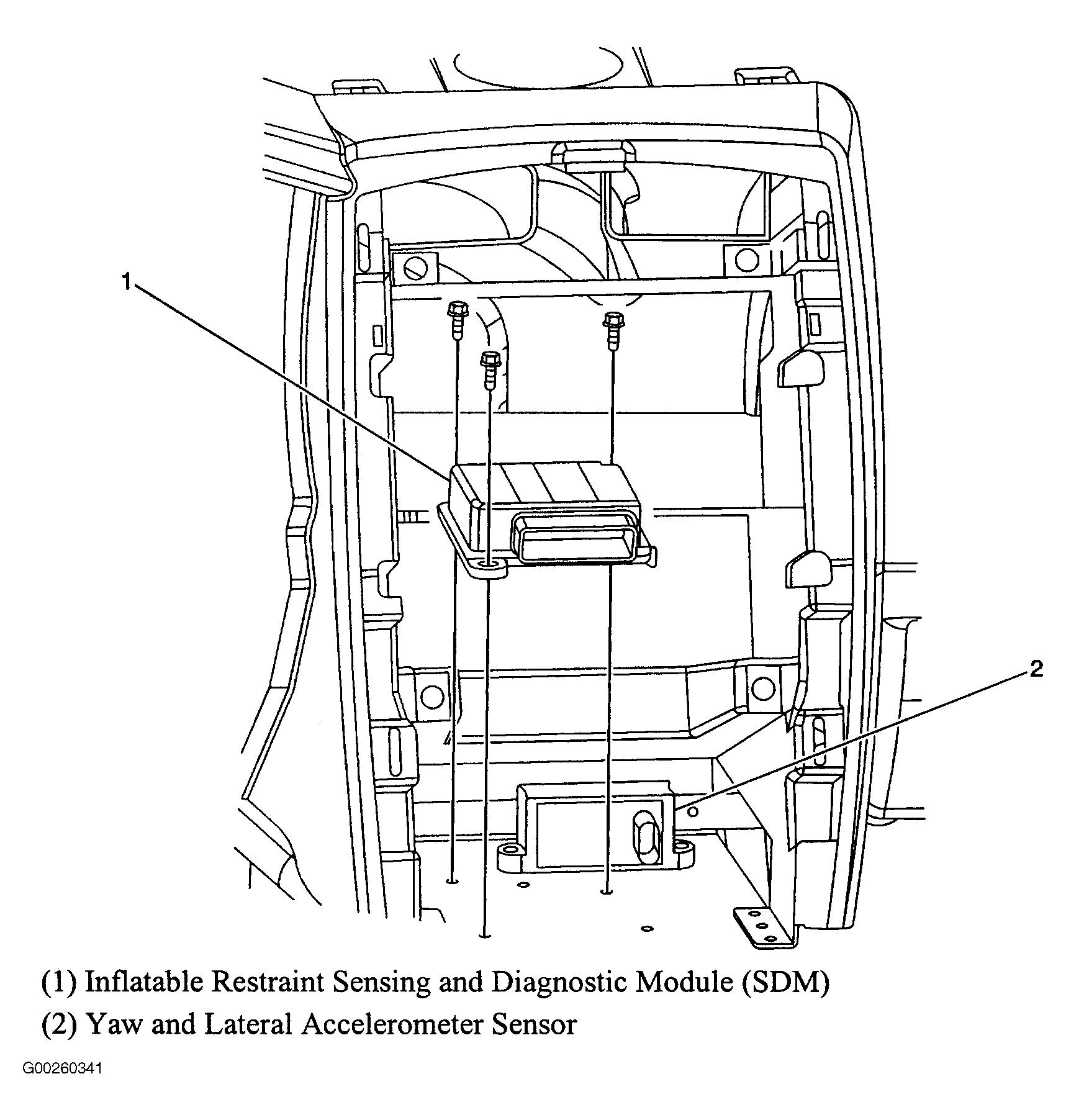 Inflatable Restraint Sensing & Diagnostic Module (SDM) Located underneath vehicle console. See Figure .