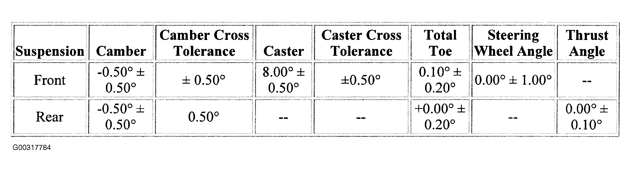 Fig 1: Wheel Alignment Specifications (2004 XLR)