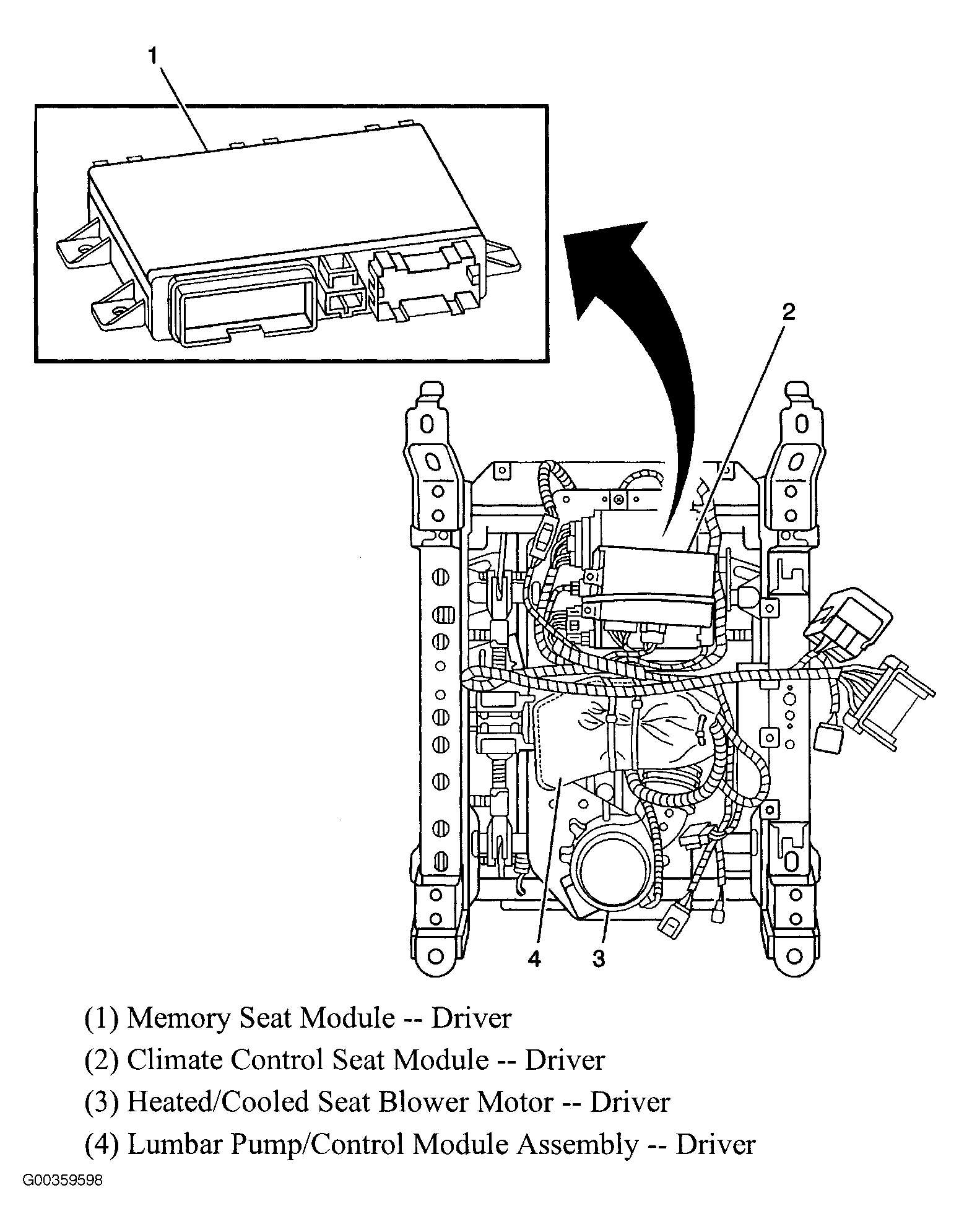 | Lumbar Pump/Control Module Assembly - Driver | Under driver seat. See Figure . |