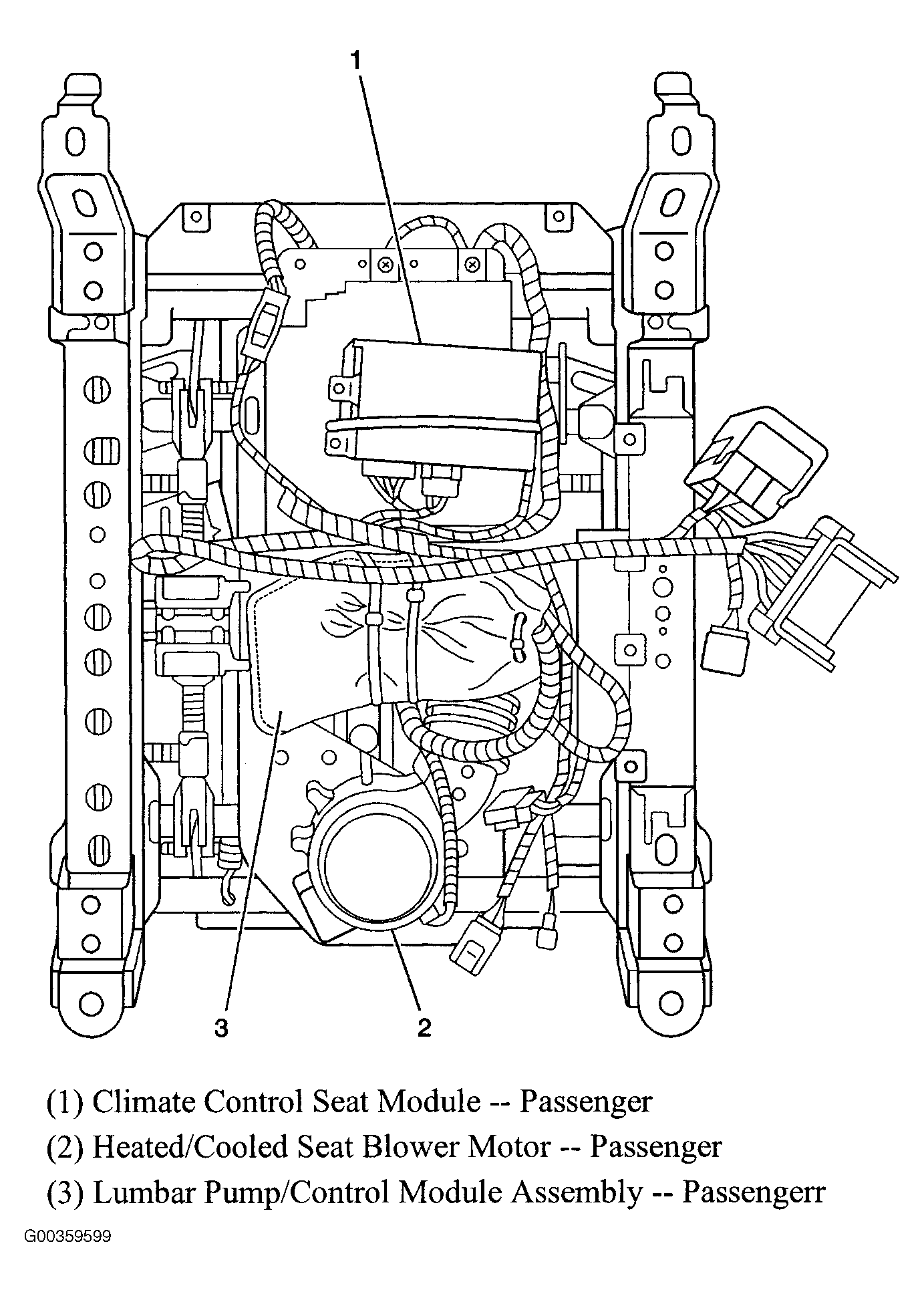 | Seat Cushion Heated/Cooled Ventilation Module - Passenger | In passenger seat cushion, in air ducting. See Figure . |